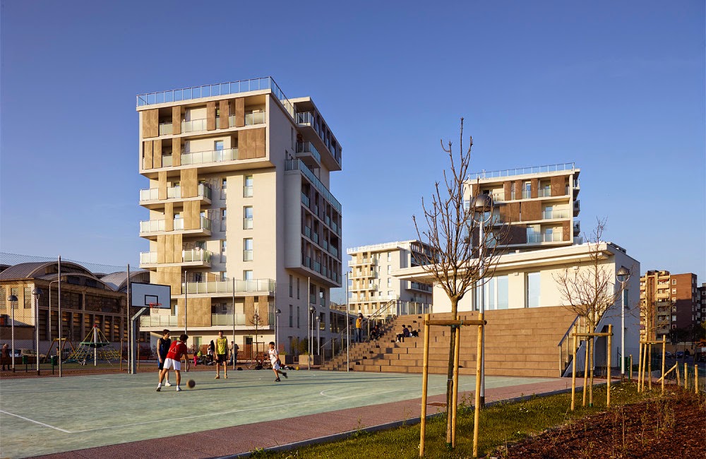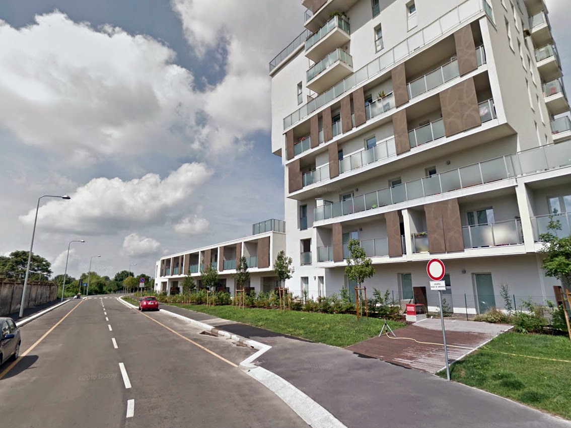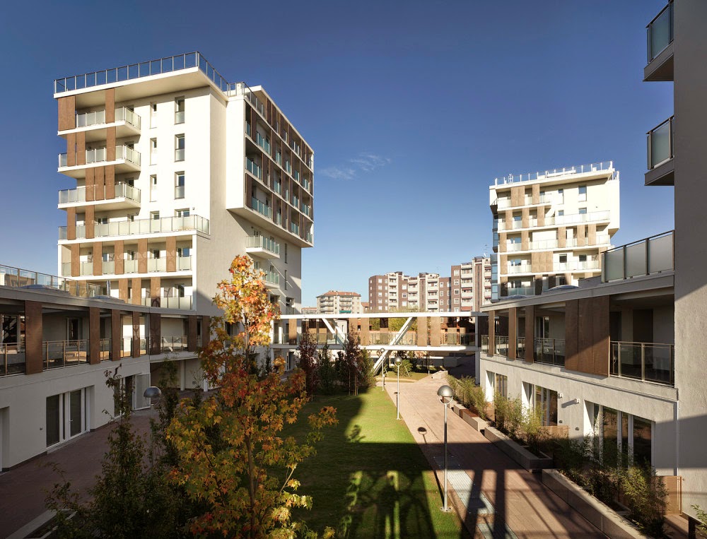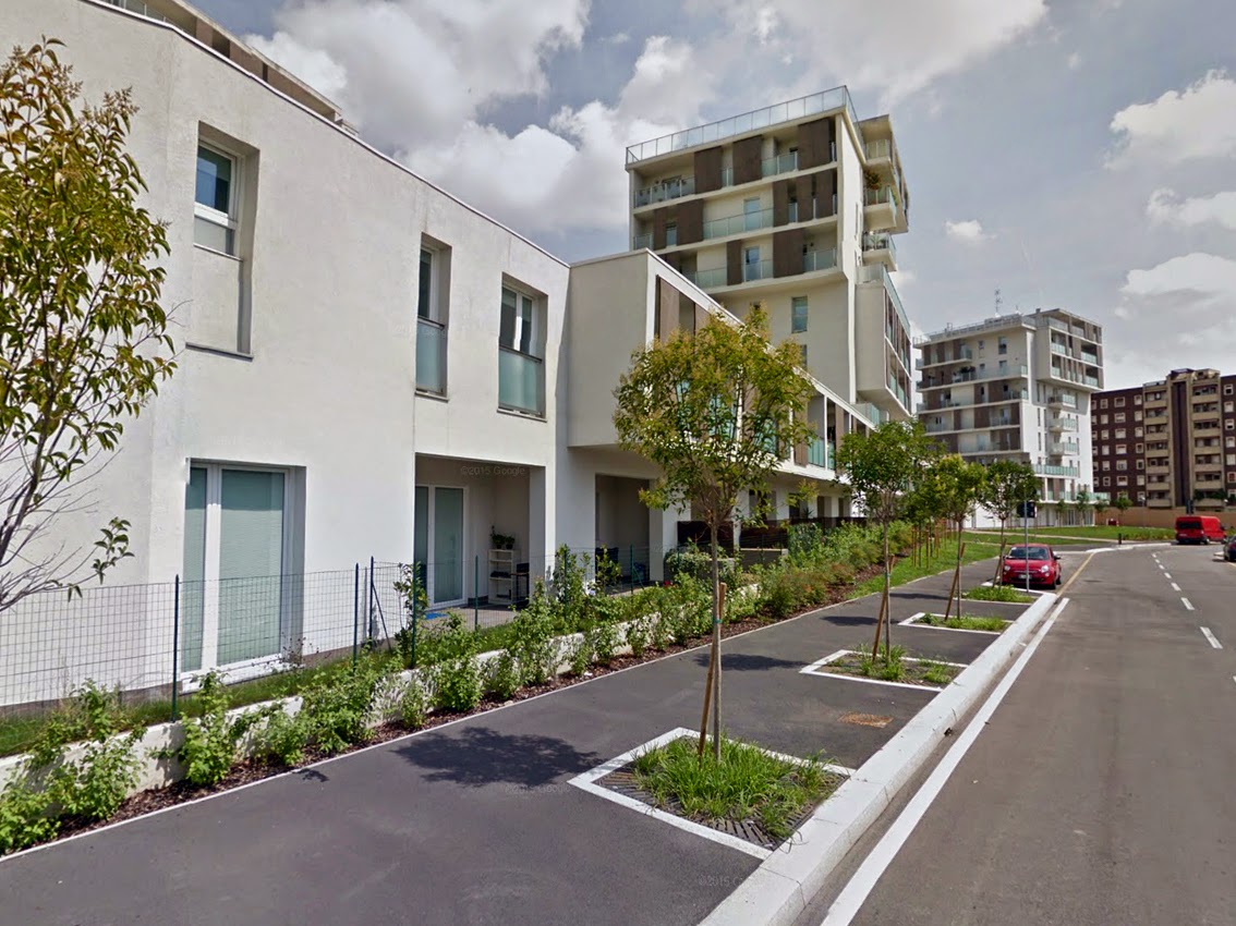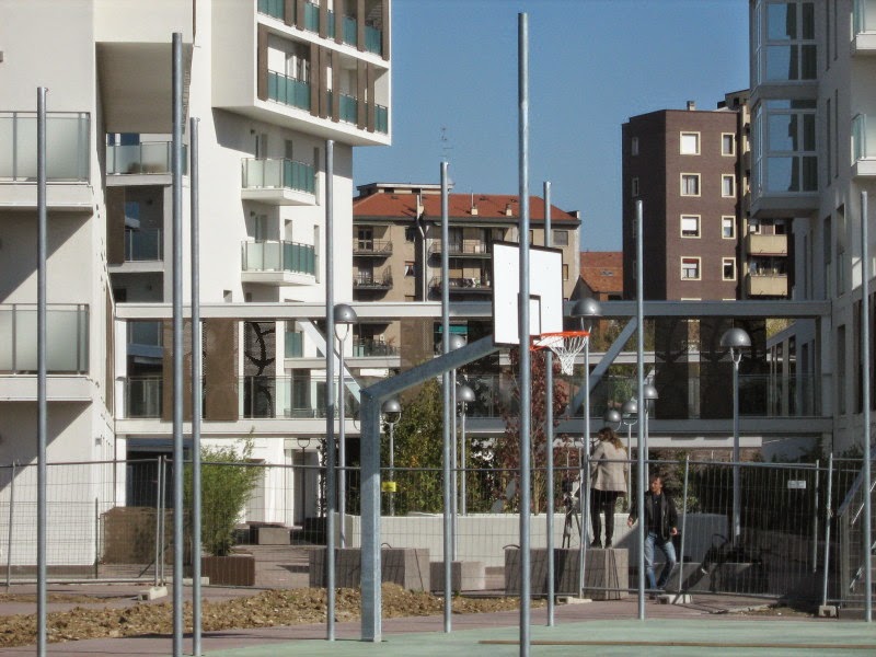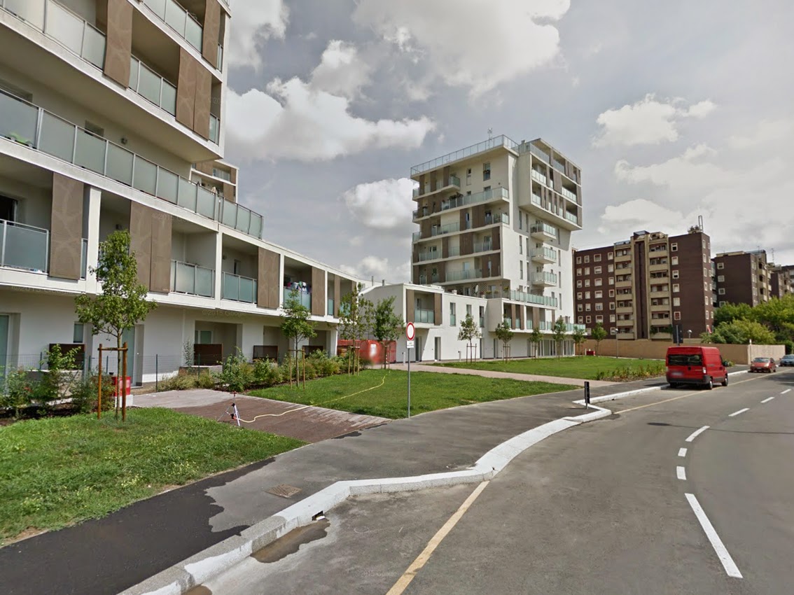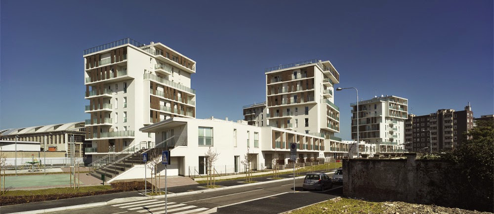 Ai bordi della città, o meglio, in una zona ancora abbastanza selvaggia a causa della presenza ingombrante della caserma di Piazzale Giuseppe Perrucchetti con la sua enorme piazza d’armi oramai pronta anch’essa ad essere trasformata si trova il complesso di alloggi economicamente accessibili o Housing Sociale come si usa dire oggi.