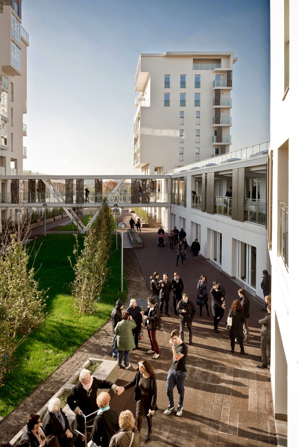 La caratteristica di queste case sta nel fatto che sono state realizzate in usando il legno per le strutture portanti, una vera rarità in Italia, più comune all’estero. Le strutture sono state arricchite anche da spazi comuni per adulti e bambini, dagli orti pensili al campo di basket con gradinate e dai giardini officinali.
