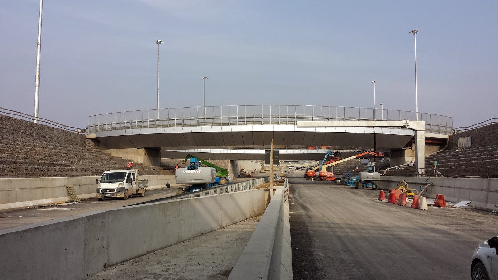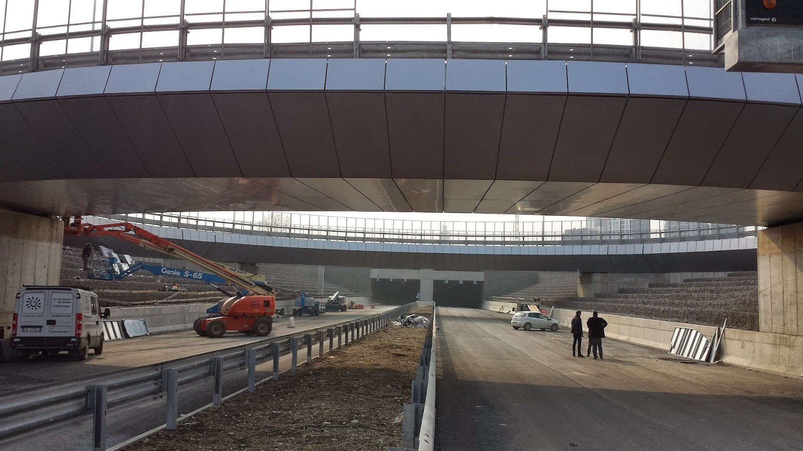 Ci sono anche alcune immagini del Ponte a Tre Archi che scavalca autostrade e ferrovia passando unendo A8 Milano Laghi-Malpensa, parcheggio, la zona di Roserio, via Giorgio Stephenson con i quartieri di Cascina Merlata e Molino Dorino. Si nota anche la nuova rotonda di Via Triboniano che sovrasta la nuova superstrada.