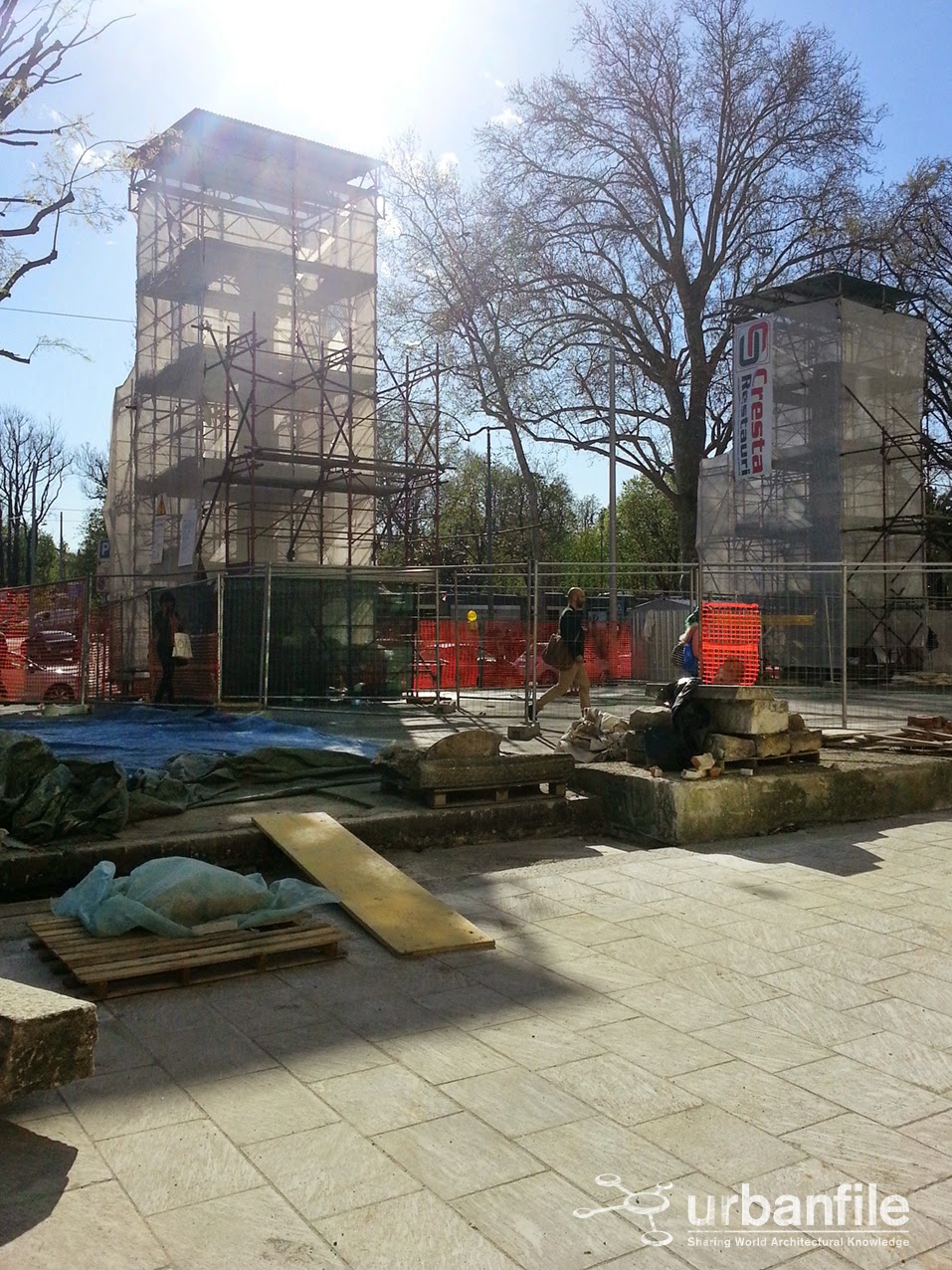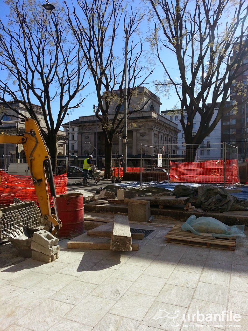 Siamo passati da piazza Oberdan, porta Venezia, per vedere come stiano procedendo i lavori di riqualifica per la piazza. Il lato verso l’ex Diurno Venezia sta procedendo a gran ritmo, il marciapiede ha sostituito la corsia stradale ed è stato piastrellato con le pietre in beola. Procedono anche i lavori di restauro dei due comignoli camuffati da colonne in cemento che erano ammalorati e pericolosi per possibili crolli che non potevano più aspettare. L’intervento per l’area della piazza era necessario e il Comune ha deciso di intervenire anche se durante i mesi Expo sarà ancora un cantiere, perché la piazza era così conciata e mal frequentata che non si poteva rimandare, meglio vedere un cantiere piuttosto che il degrado che vi persisteva da oramai troppi anni, come aveva sostenuto l’assessora ai Lavori Pubblici Carmela Rozza.