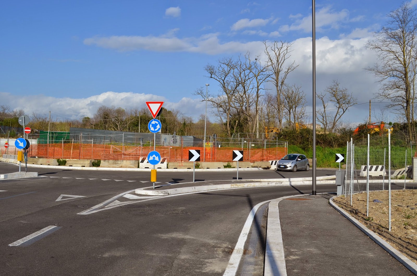Infatti, adiacente alla nuova rotonda in costruzione si trova l’ingresso per la NCI, presumibilmente con direzione Salaria; la presunzione deriva dal fatto che non è presente nemmeno un cartello per segnalare la direzione agli automobilisti che passano in zona, crendo così un surreale carosello di auto ferme a chiedere informazioni ai passanti.