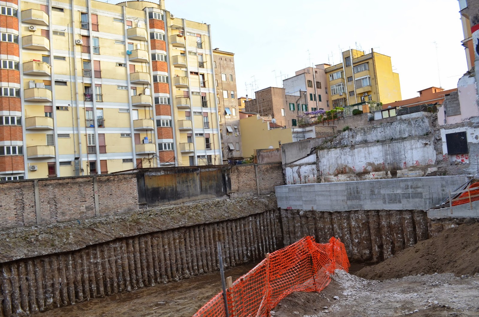 Iniziano i lavori, si scava e si porta via la terra, mentre si mettono in sicurezza le mura perimetrali della vecchia struttura.