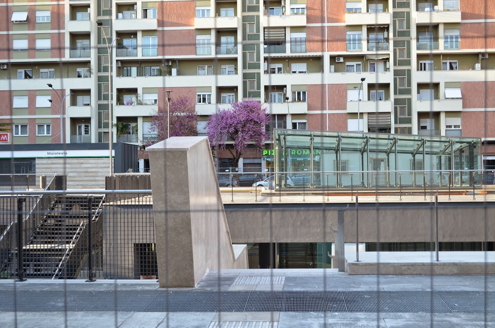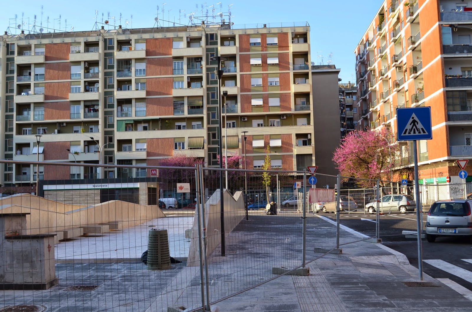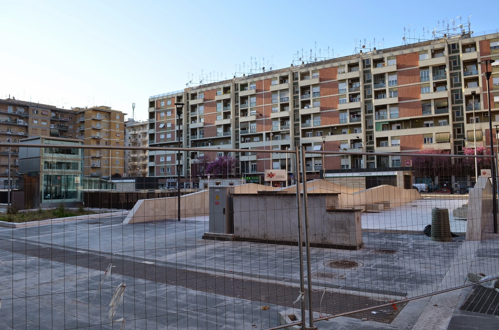 Le entrate della metro ai lati della piazza e su via Malatesta sono state concepite come degli scatoloni, un’idea che, purtroppo, non è esattamente quel che si definisce un “belvedere”.