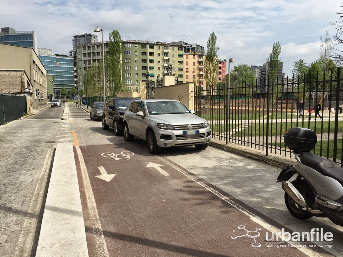 Via Gaetano de Castillia ha una bella pista ciclabile, oramai da almeno tre anni. Eppure pare che alcuni neanche notino la sua presenza. E’ incredibile come a Milano ci sia un così scarso senso civico e un rispetto delle più banali regole. Questo succede spesso e non è l’unica zona così poco rispettata.