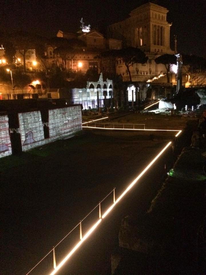 In occasione del Natale di Roma è stata presentata dal sindaco Marino e dal ministro Franceschini la nuova illuminazione nell’area archeologica dei Fori.