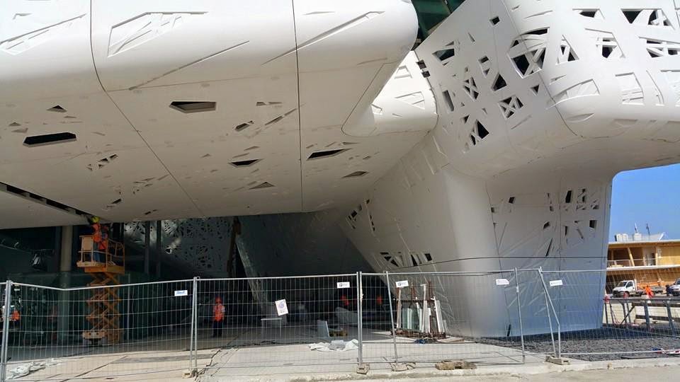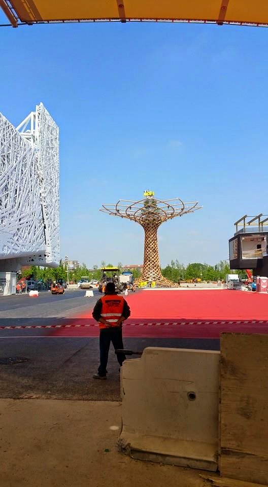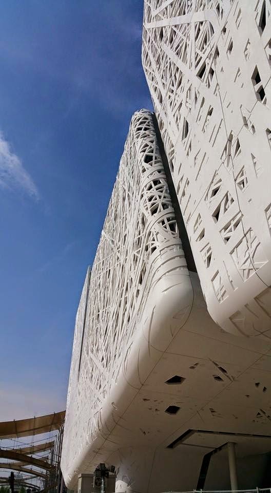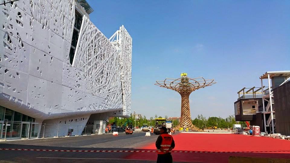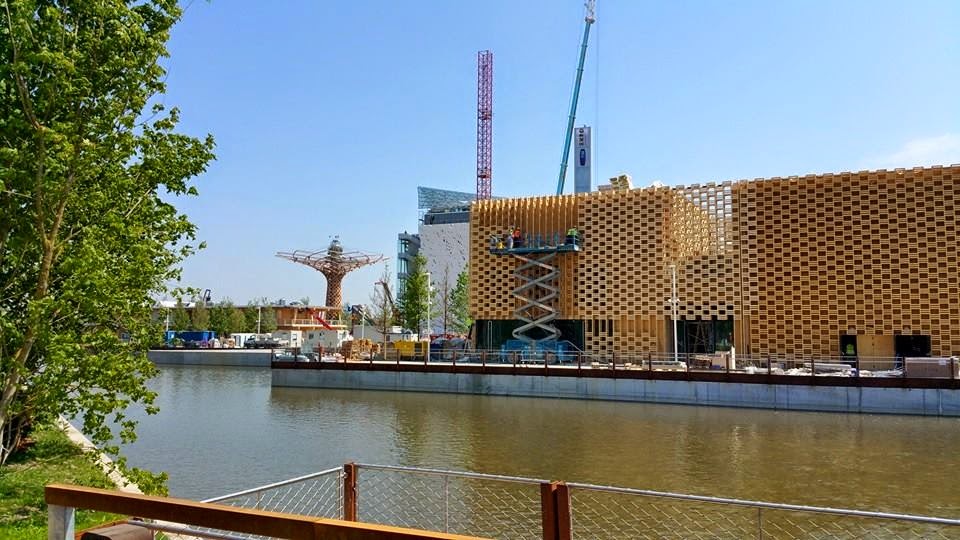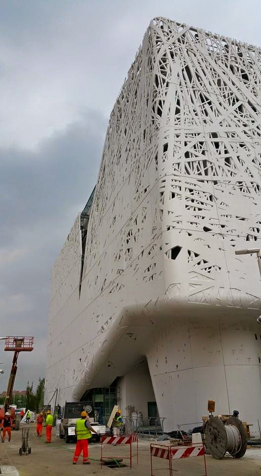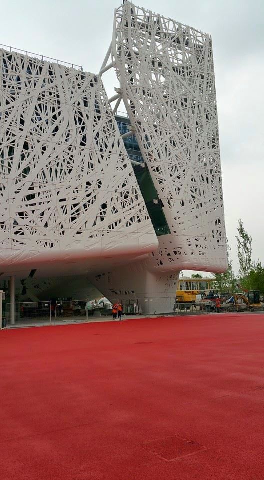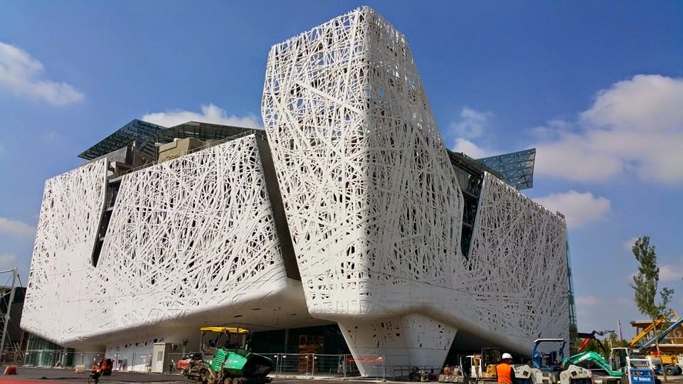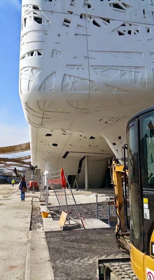 Ecco una bella carellata di foto che mostrano come sono avanzati i lavori al padiglione Italia. Esternamente è stato completato il rivestimento, qualche problema rimane all’iterno, che rimane ancora da rifinire. Comunque la gru nei giorni scorsi è stata smontata e si sono compiuti passi da gigante grazie all’arrivo di nuovi muratori e tecnici.