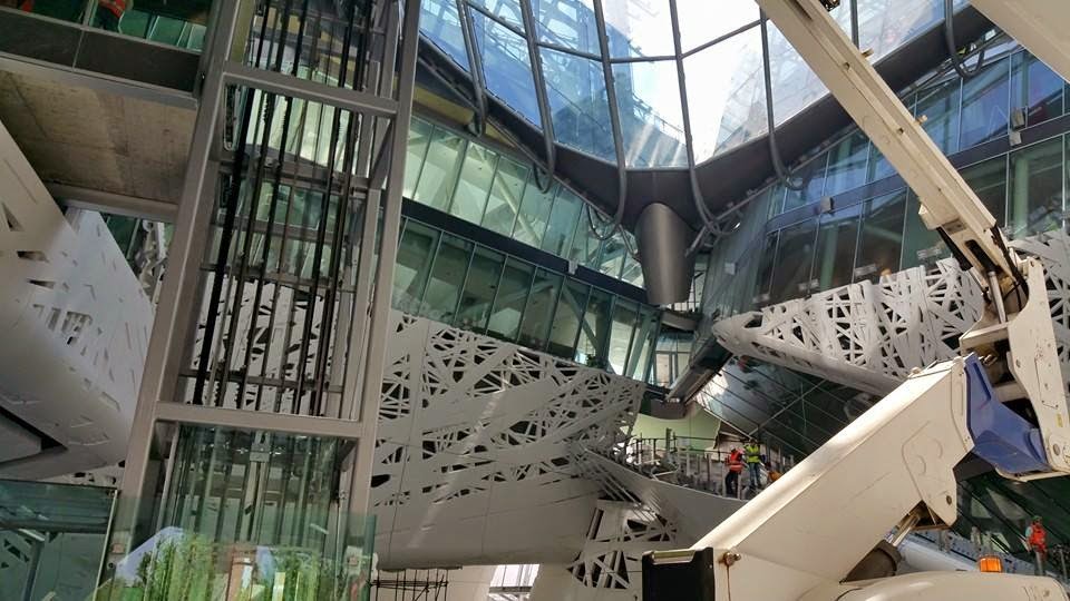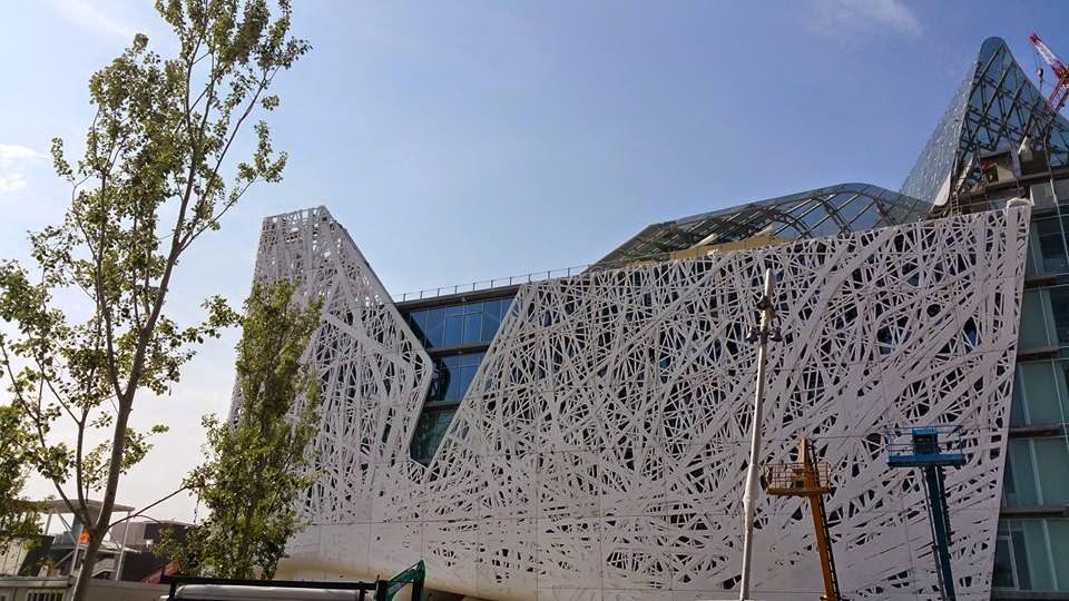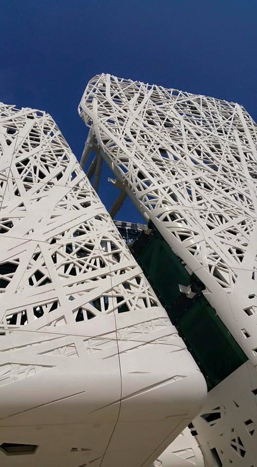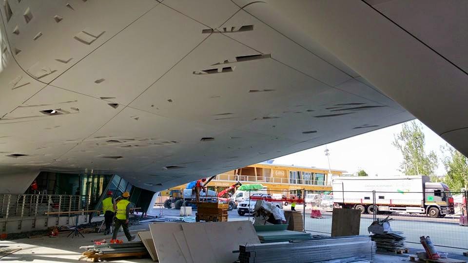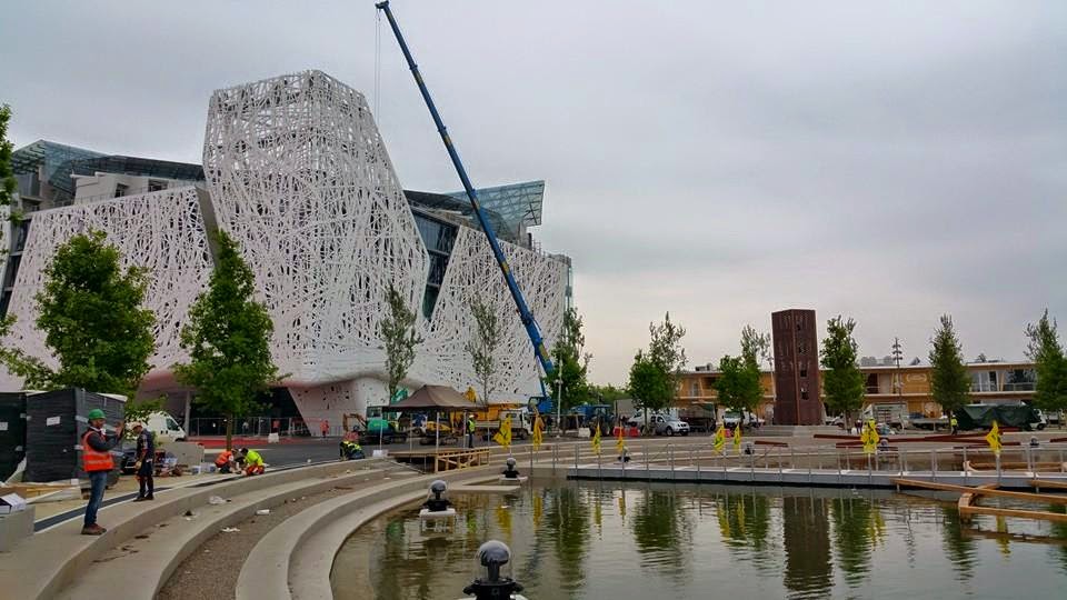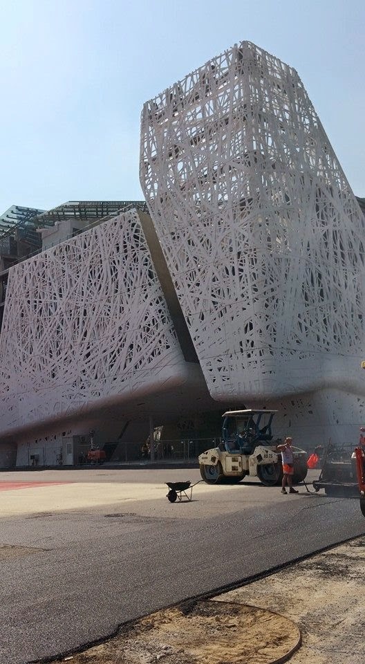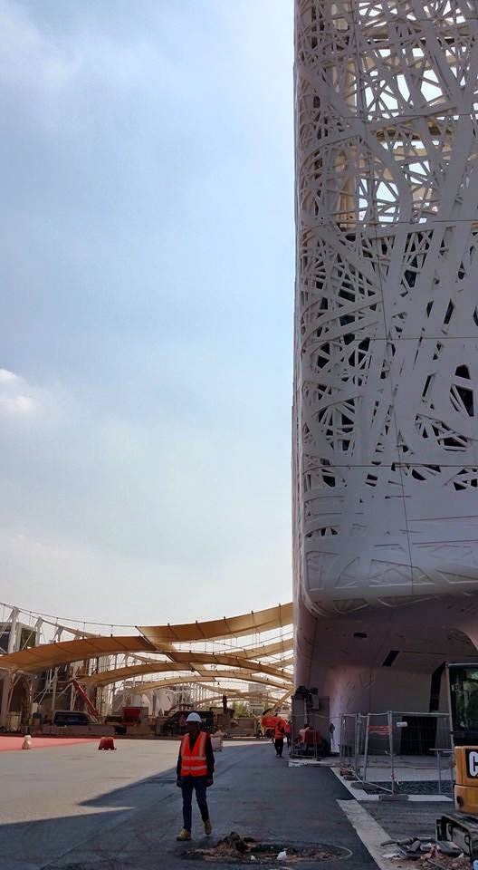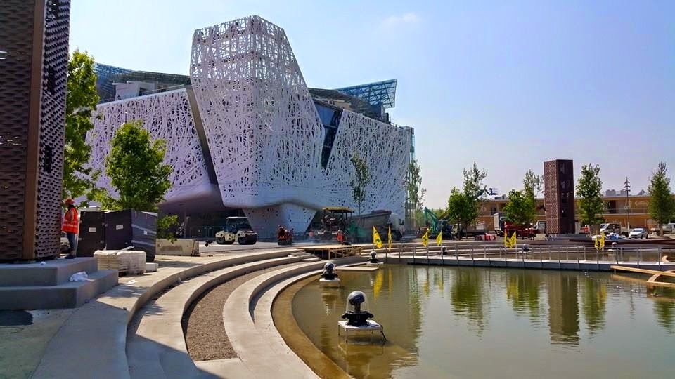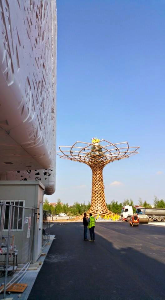Ecco una bella carellata di foto che mostrano come sono avanzati i lavori al padiglione Italia. Esternamente è stato completato il rivestimento, qualche problema rimane all’iterno, che rimane ancora da rifinire. Comunque la gru nei giorni scorsi è stata smontata e si sono compiuti passi da gigante grazie all’arrivo di nuovi muratori e tecnici.