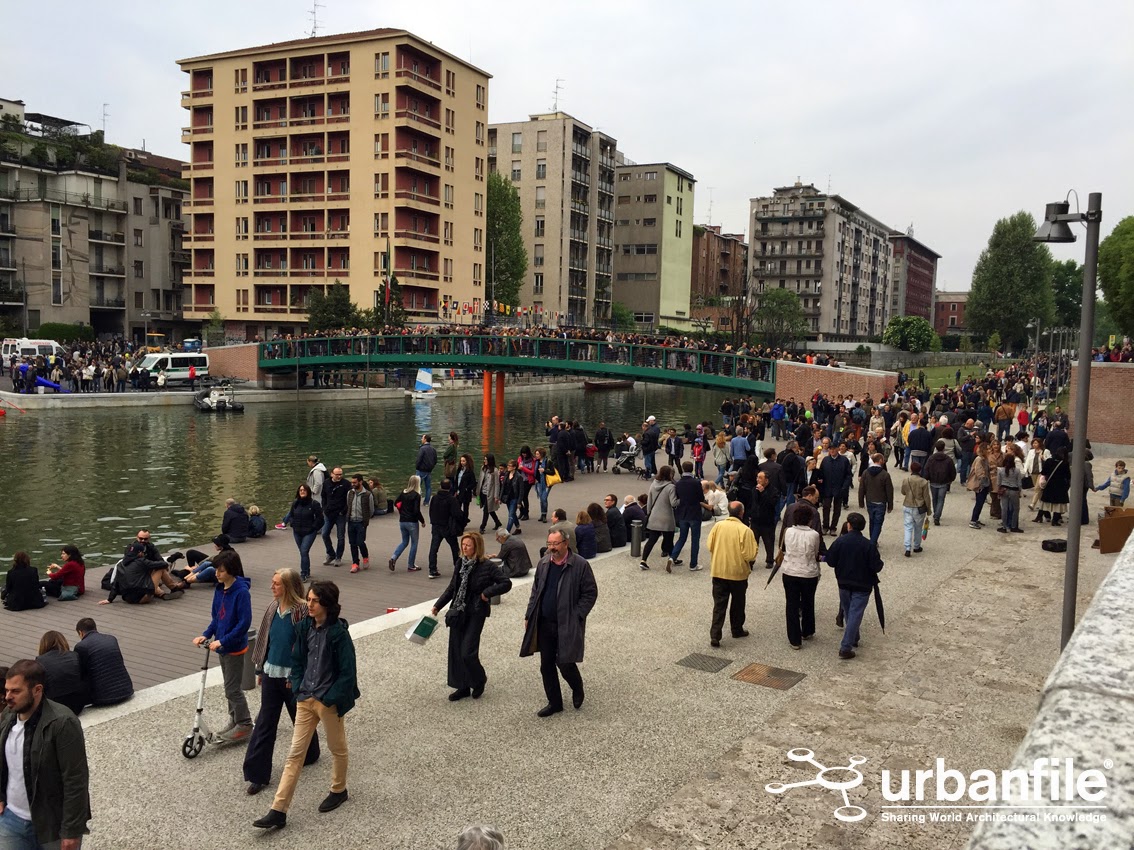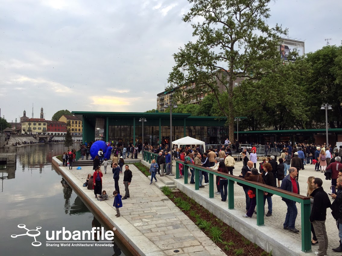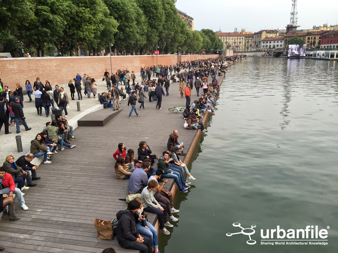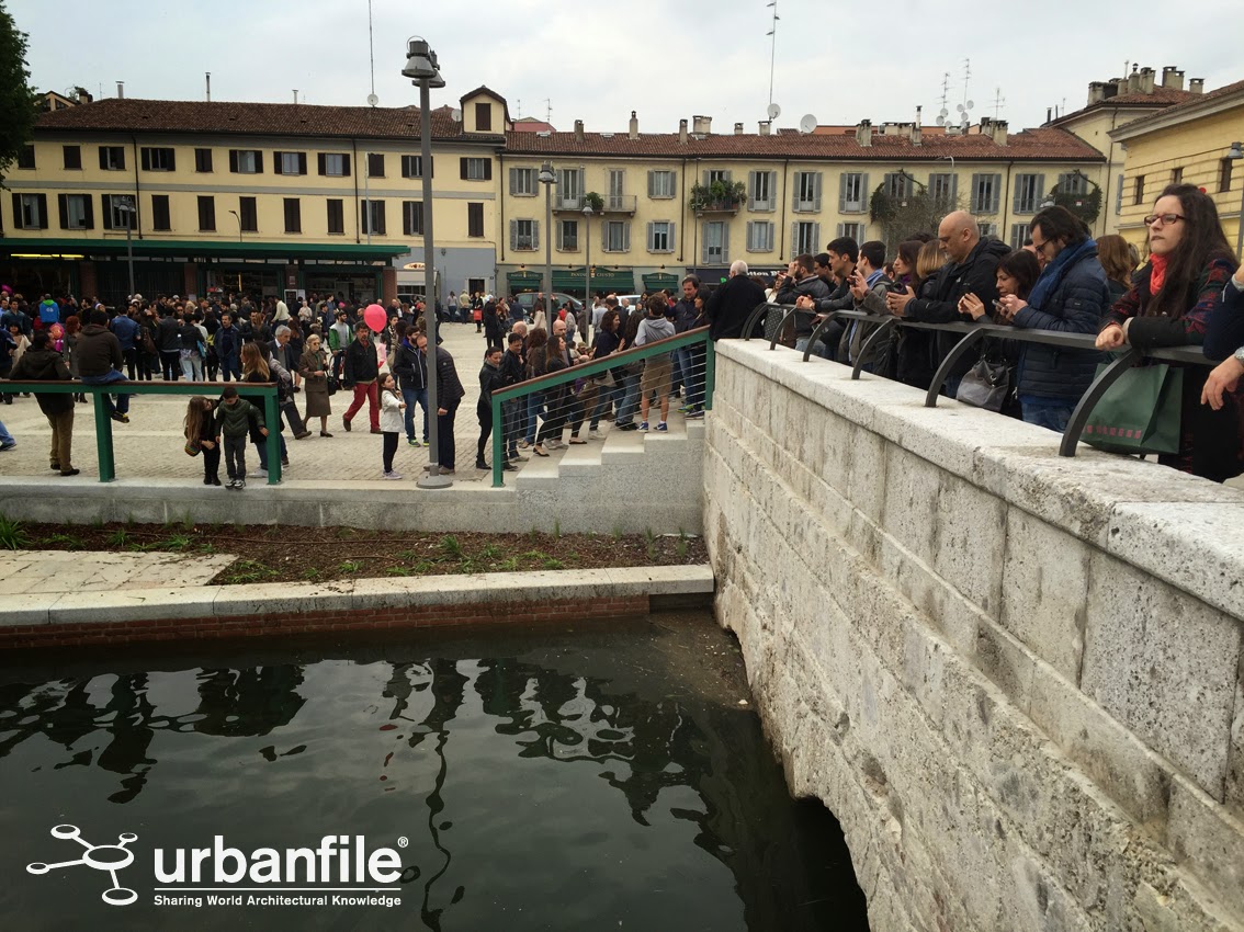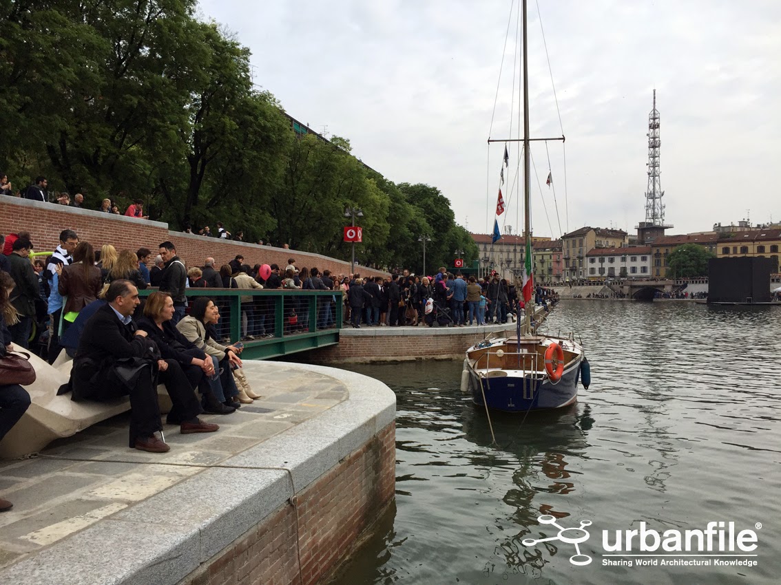 Ieri si è inaugurata la nuova Darsena. Finalmente dopo quasi 10 anni di oblio il porto di Milano è tornato o meglio, è diventato un luogo per la gente. Prima era un porto, poi un parcheggio, quindi un non luogo. Si, piazza XXIV Maggio e le sponde della Darsena non erano mai state un luogo per passeggiare, fare foto o fermarsi coi piedi a penzoloni sul bordo dell’acqua per stare in compagnia e guardare il panoramma (nonostante il brutto tempo pronto a scaricare altra acqua dal cielo). Ieri siamo stati lì a fare un giro cercando di ammirare il luogo senza trovare i difetti. Su quelli abbiamo già scritto abbastanza e ne scriveremo ancora (in primo luogo i lampioni poco inerenti al luogo).
