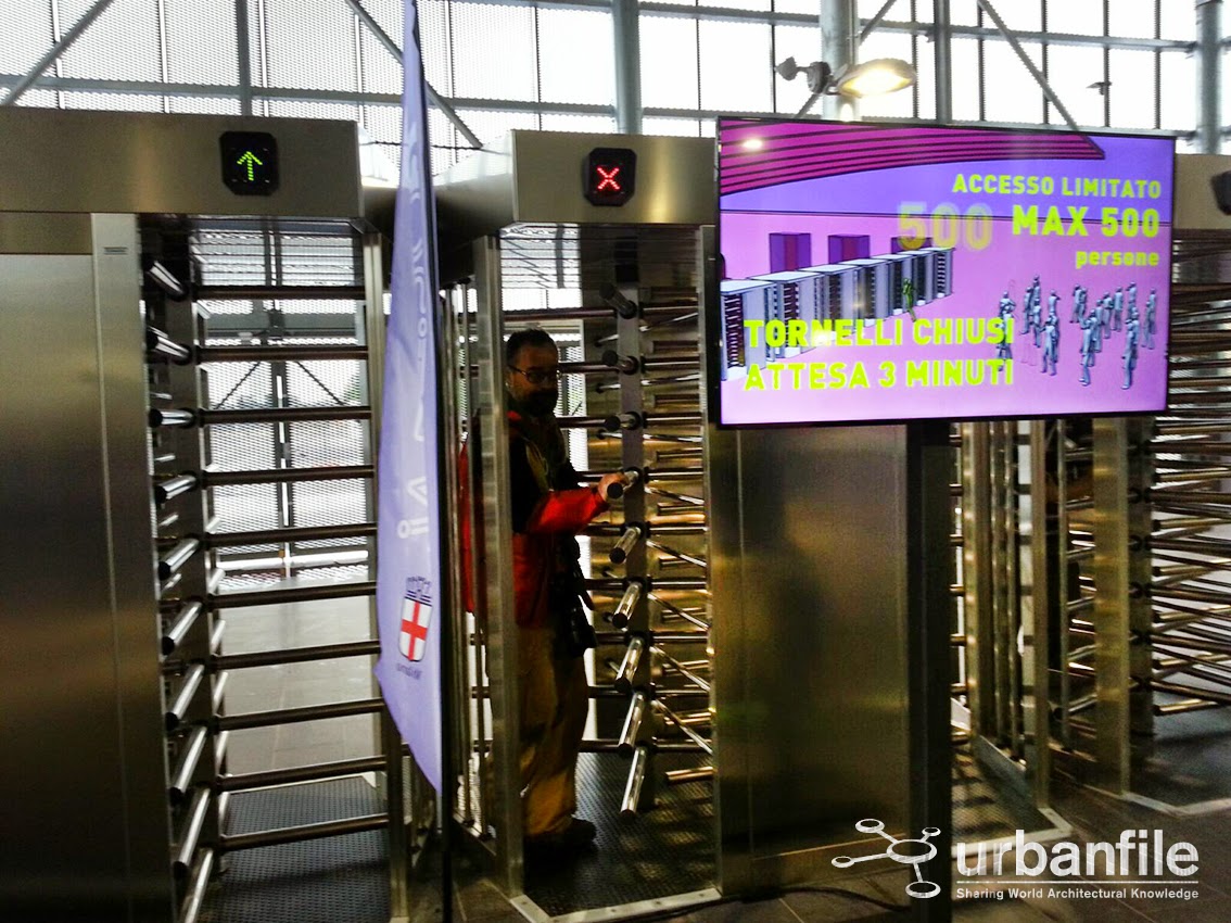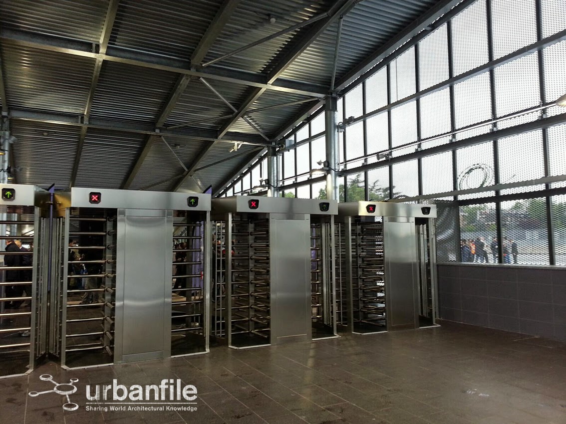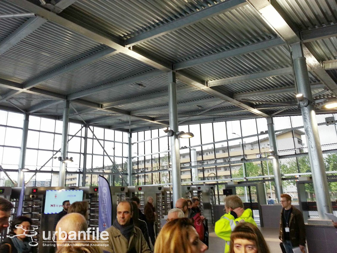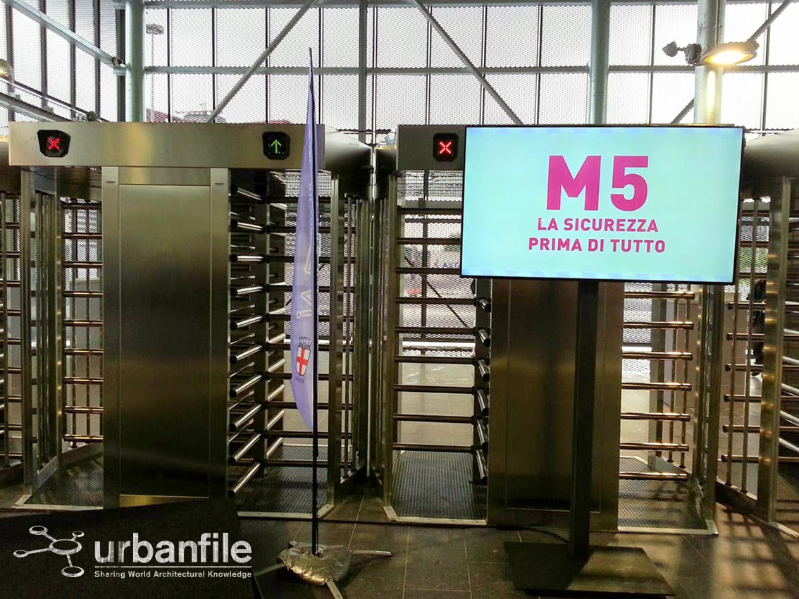 La nuova fermata Stadio ha anche una così detta zona Filtro. Sotto una grande tettoia metallica, all’esterno della stazione, c’è una fila di tornelli (in funzione solo durante gli eventi) che consentiranno di gestire l’afflusso degli utenti in uscita dallo Stadio e diretti ai treni, in modo che lo spazio in banchina non sia sovraffollato. Il sistema di sicurezza è stato messo a punto per scaglionare gli ingressi a evento finito ed evitare che le persone si riversino in massa verso i treni. Con i tornelli viene gestito l’ingresso del pubblico dello Stadio ai treni M5. Al raggiungimento del passaggio di 500 utenti i tornelli vengono bloccati fino a che il treno con il suo carico non ha lasciato la stazione e solo allora  si riapre per riniziare il ciclo. Il tempo medio di attesa è intorno a 3 minuti. In questo modo si ottiene una gestione disciplinata dei flussi.