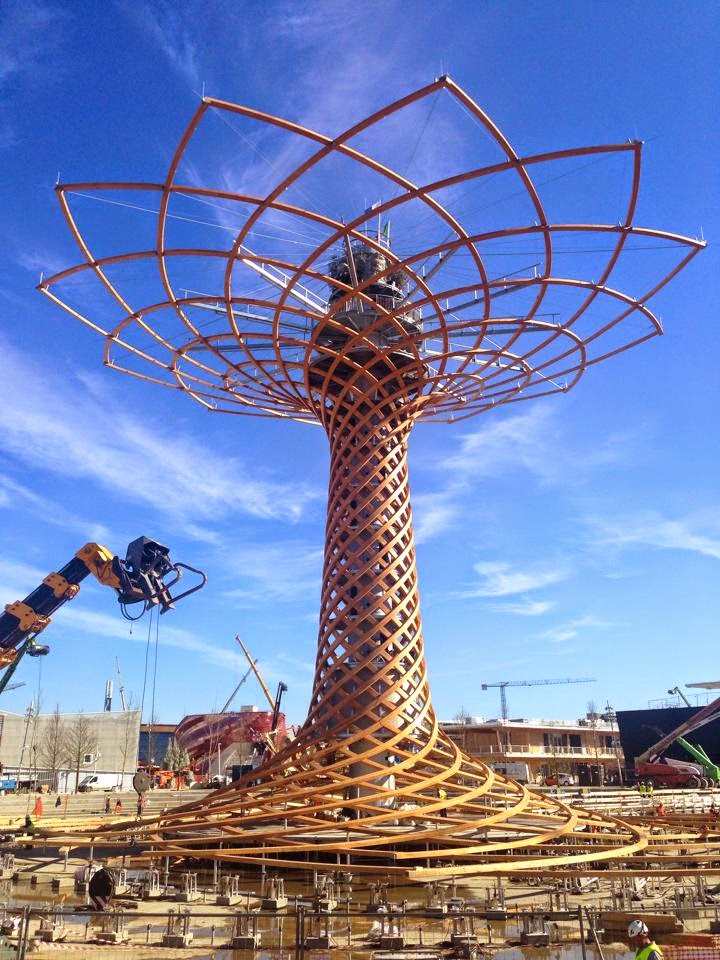 spirata al famoso disegno di Michelangelo della Piazza del Campidoglio di Roma, l’Albero della Vita è una costruzione che si avvolge su se stessa e sembra prendere vita: un simbolo del nuovo Rinascimento italiano, emblema del Padiglione Italia, punto di incontro e di ritrovo per i visitatori.