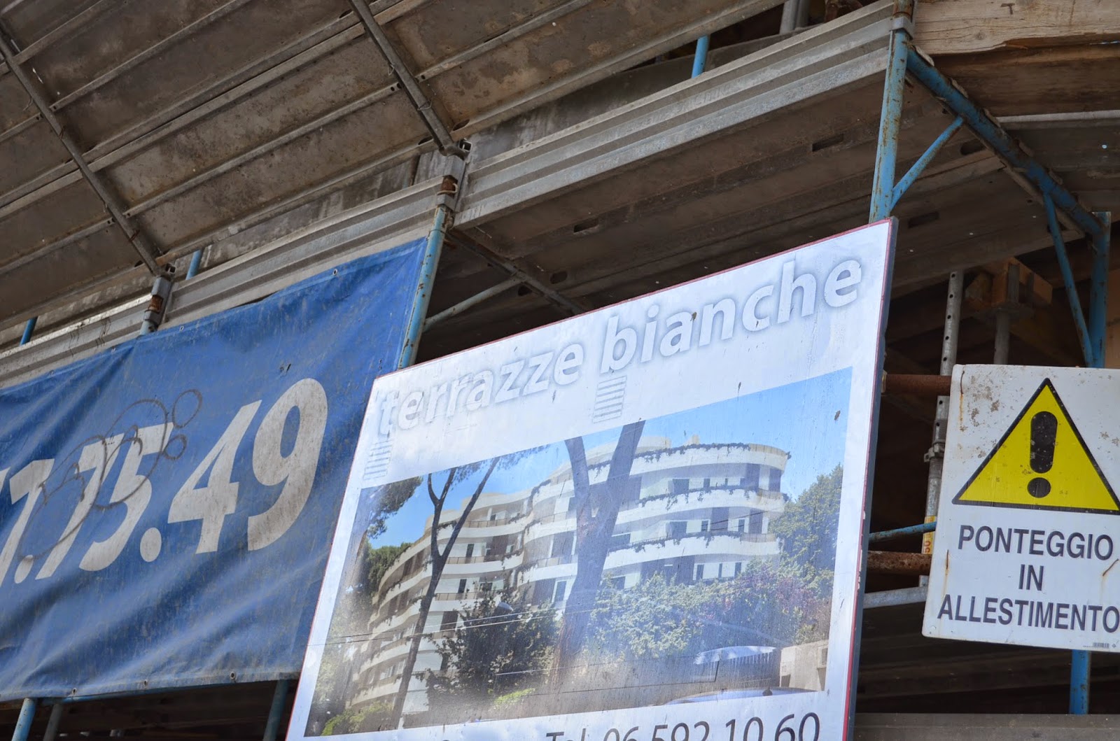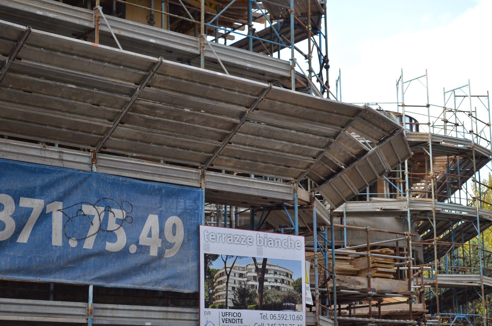 Infatti, dalle immagini che si trovano sulle impalcature, saltano all’occhio le grandi balconature curve e perimetrali alla struttura.