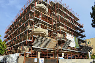 Anche in questo caso la nuova struttura è abbastanza regolare, un classico edificio squadrato in cui il massimo del dinamismo è dato dai balconi sfalsati su un lato della facciata.