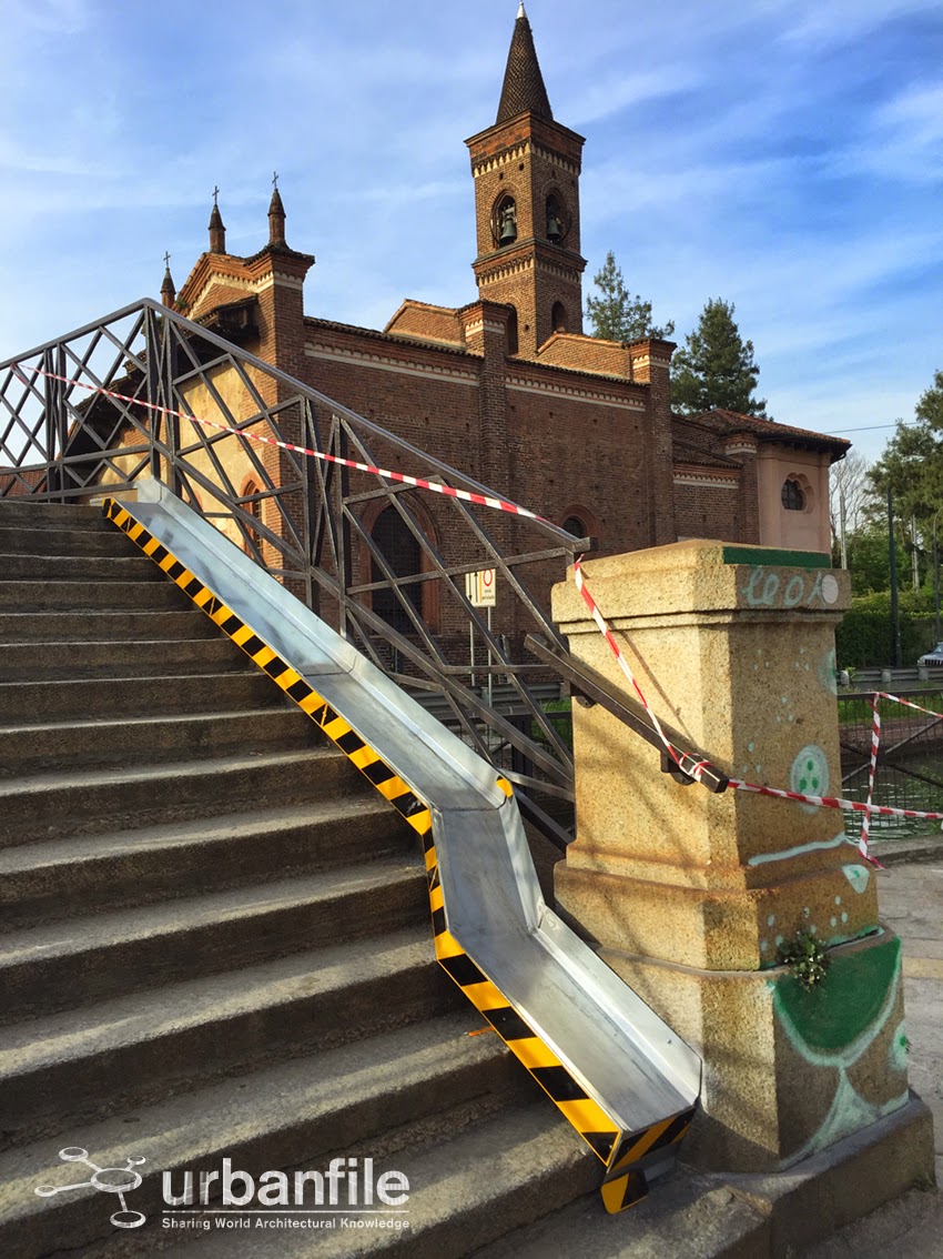 Da qualche mese su tutti i ponti milanesi il Comune sta facendo istallare uno scivolo metallico posto ai lati delle scale per aiutare la salita e discesa di chi debba passare sul ponte con una bicicletta. Appoggiando le ruote sullo scivolo metallico il superamento del ponte col mezzo a due ruote è facilitato. Peccato che questi scivoli metallici siano, anzitutto brutti a vedersi e in questo caso, per superare i pilastri della balaustra del ponte ottocentesco lo scivolo debba fare uno zigzag un po’ esagerato tanto che una bici è impossibilitata ad usarlo. Risultato? Tutti quelli con la bici usano il vecchio metodo, ovvero a spalla o saltellando sugli scalini, e a volte persino le persone anziane faticano a reggersi alla ringhiera temendo di capitolare (lo conferma il bar che si trova proprio di fronte al ponte sulla Lodovico il Moro). Insomma, caro Comune, bisogna aggiustare il tiro o la rampa. Ah, dimenticavamo, dato che c’erano, potevano anche ripulire i pilastri dagli orrendi scarabocchi dei soliti vandali.