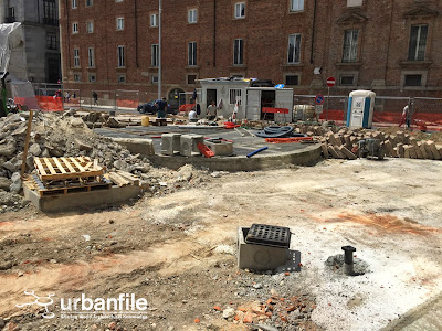 Manca decisamente poco alla conclusione dei lavori in piazza Missori, oramai è rimasto da completare solo il pezzo verso il palazzo al numero 2, tra le vie Mazzini e Unione. Qui ci sarà la grande aiuola che rimarrà tra il monumento al generale e il palazzo moderno.