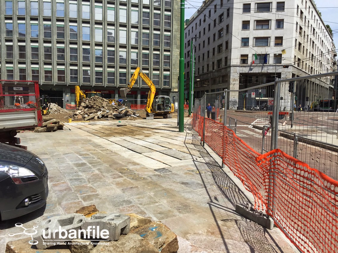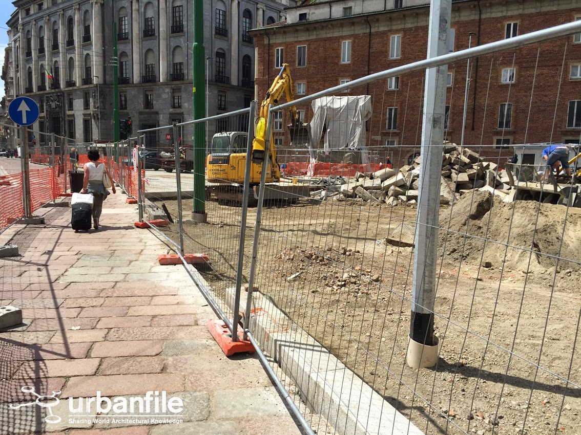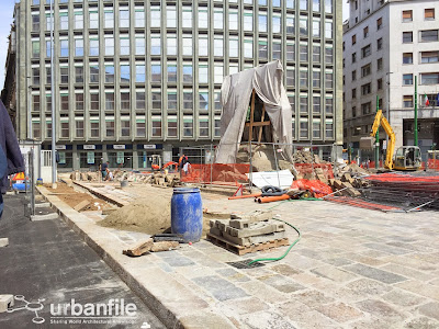 Manca decisamente poco alla conclusione dei lavori in piazza Missori, oramai è rimasto da completare solo il pezzo verso il palazzo al numero 2, tra le vie Mazzini e Unione. Qui ci sarà la grande aiuola che rimarrà tra il monumento al generale e il palazzo moderno.