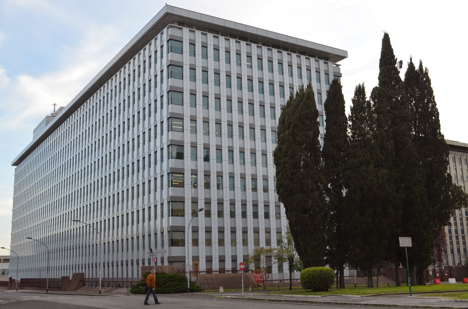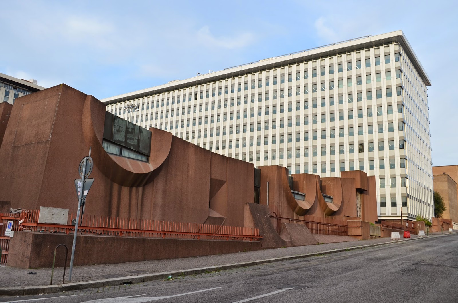 Un piccolo reportage fotografico sui lavori all’enorme complesso di via dell’Arte all’EUR, dove si sono da poco conclusi i lavori di ripulitura delle facciate.