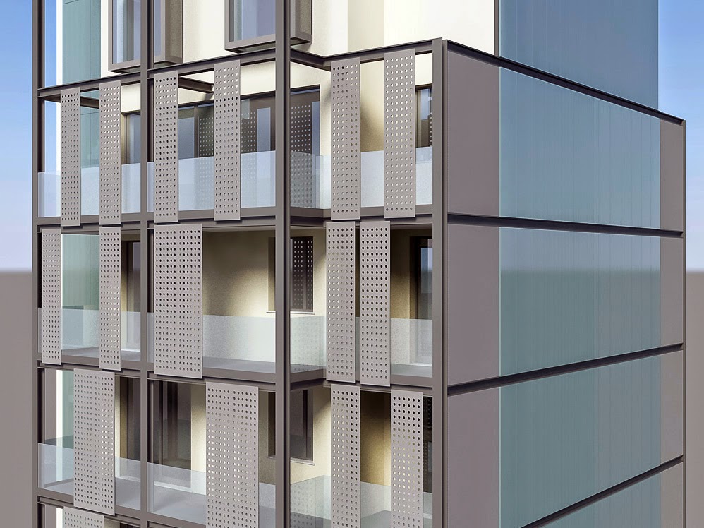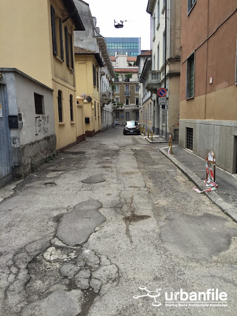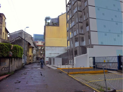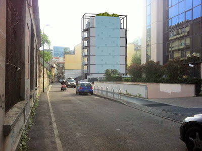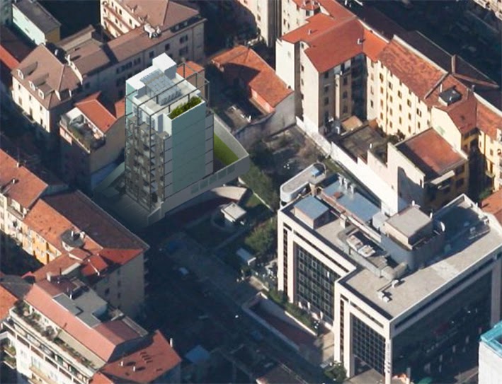 3A Architetti Associati sta realizzando una nuova palazzina al posto di un vecchio garage in via Chieti, una traversa che unisce Via Fauchè con Via Piero della Francesca e che ricorda più un vicolo di paesino piuttosto che una strada di città. La nuova palazzina è formata da 7 piani contando il piano rialzato. La pelle esterna è molto moderna e tecnologica, un po’ algida a dire i l vero, ma si inserisce in un contesto misto, di case d’epoca verso Via Piero della Francesca e case più moderne verso Via Fauchè.