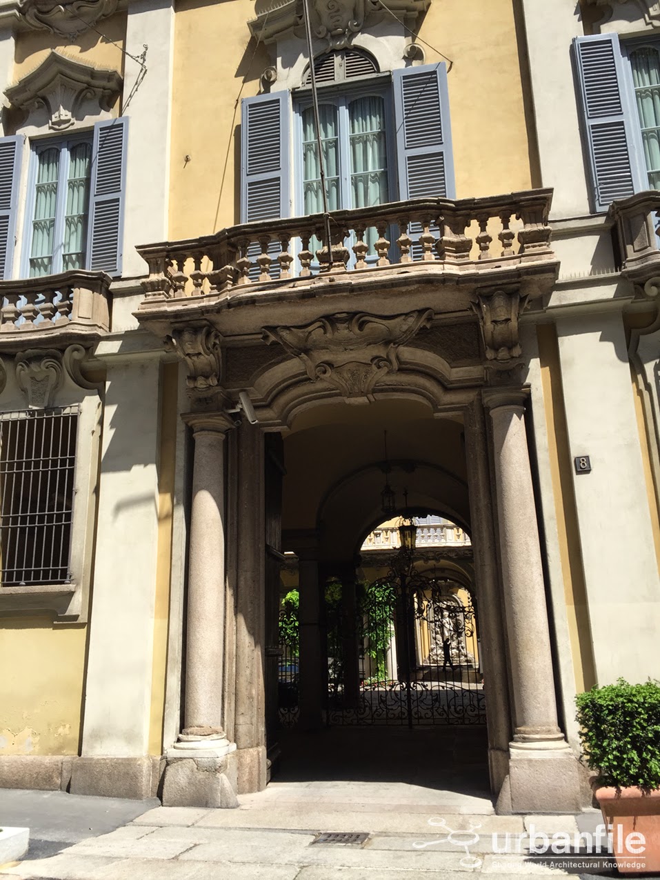 Proprio dietro al palazzone di Piazza San Babila ci si trova in una piccola via dal nome curioso, Cino del Duca (all’anagrafe Pacifico Del Duca, è stato un imprenditore, editore, produttore cinematografico e filantropo italiano), che nasconde due palazzi molto importanti e preziosi, la Casa Parravicini del 1400 e il sontuoso Palazzo Visconti di Modrone altrimenti conosciuto anche col nome di Palazzo Bolagnos del periodo rococò.