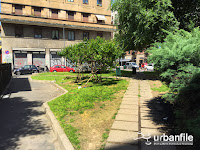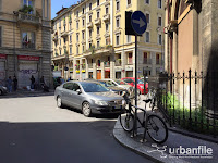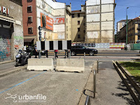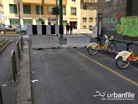Oltre a ciò le aiuole posteriori sono sporche e maltrattate. Come se non bastasse, chi desidera utilizzare le biciclette del servizio BikeMi deve compiere dei giri lunghissimi per andare in viale Tunisia che dista un solo metro, poiché sono stati posizionati dei blocchi di cemento che impediscono il transito da quel lato e dove si trova lo scivolo per accedere alla ciclabile da poco terminata, perché?