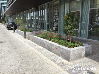 Dopo i restauri al palazzo di via Melchiorre Gioia 8 ecco che sono stati ultimati anche i lavori al tratto del marciapiede che corre attorno alle palazzine: i marciapiedi sistemati in pietra, ricostruita la pista ciclabile e create una serie di aiuole rialzate.