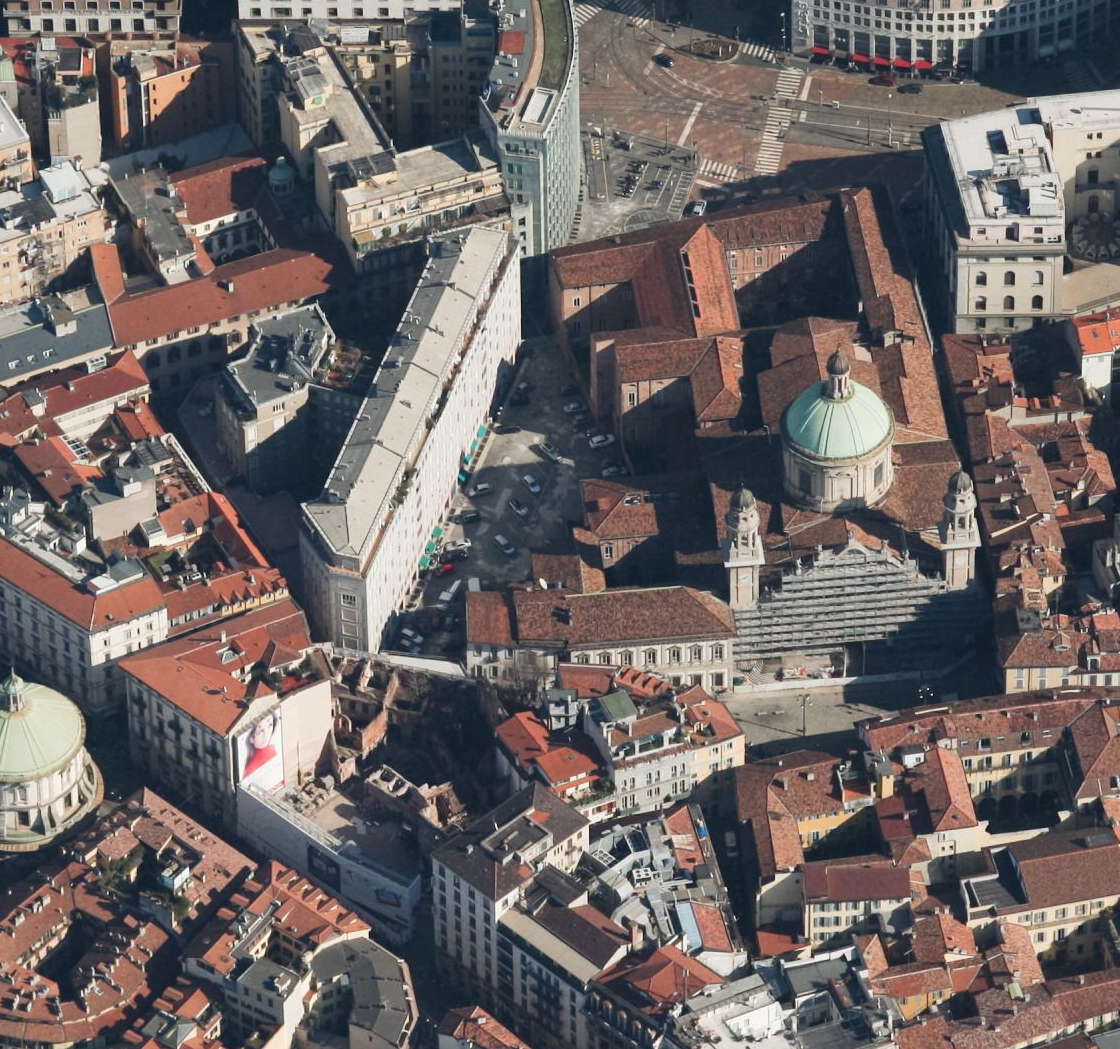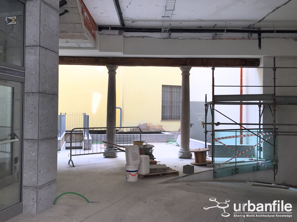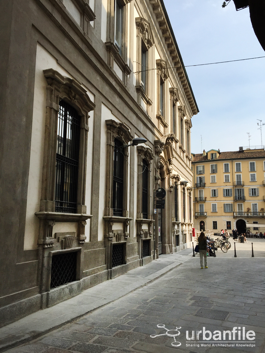 Speravamo in una sistemazione migliore per quanto riguarda il piccolo slargo posto davanti al vecchio portone, creato dal progetto mai concluso (per fortuna) della famosa Racchetta che doveva raccordare Corso Europa con Largo Cairoli passando da piazza Missori, e concepita come una grande via che sventrando il centro cittadino permettesse un veloce passaggio automobilistico.