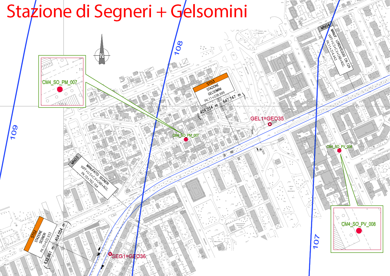 All’altezza di Largo Gelsomini e Via Francesco Primaticcio troviamo l’altro (al momento piccolo) canterino. Qui sarà costruita la Stazione Gelsomini