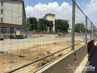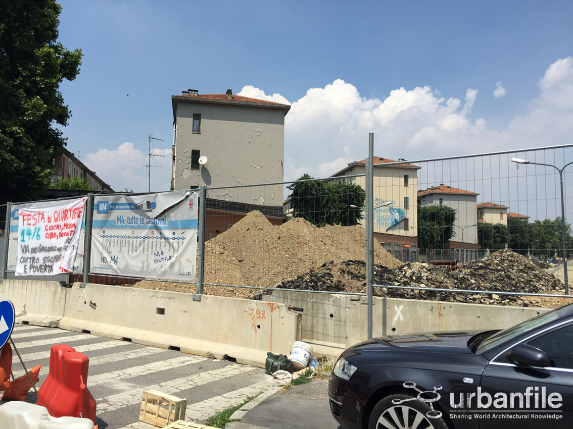 Proseguiamo il viaggio lungo il percorso della M4. Abbiamo esaminato fino ad ora la sezione ad est e quella in Piazza Tirana, dove si sta costruendo uno dei manufatti posto tra una stazione e l’altra. Siamo così risaliti lungo Via Segneri, dove sarà realizzata una delle fermate. Il cantiere, quasi all’angolo con Via Lorenteggio, è ancora nella sua fase embrionale, sebbene gli alberi siano già stati tagliati e le cesate innalzate.