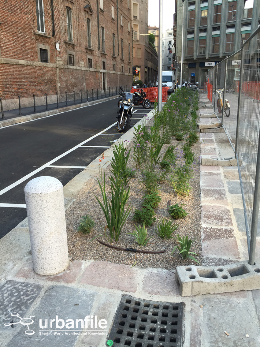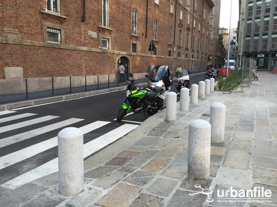 Anche i lampioni ci convincono poco. Chissà come mai a Milano l’illuminazione stradale è sempre moderatamente trascurata quanto ad estetica dei supporti, che invece darebbe un aspetto più elegante e ricercato agli interventi di arredo urbano.