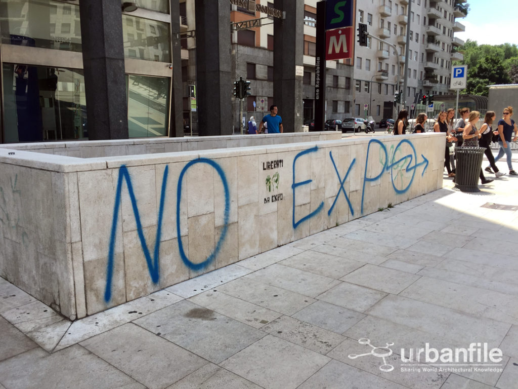 Giorgio Armani in un intervista al Corriere della Sera: «È angosciante vedere le scritte NO EXPO sui muri, la prima cosa da fare era cancellarle, poi capisco anche che il sindaco abbia cose più importanti da fare. Però è anche vero che quei muri sono le vetrine della città».