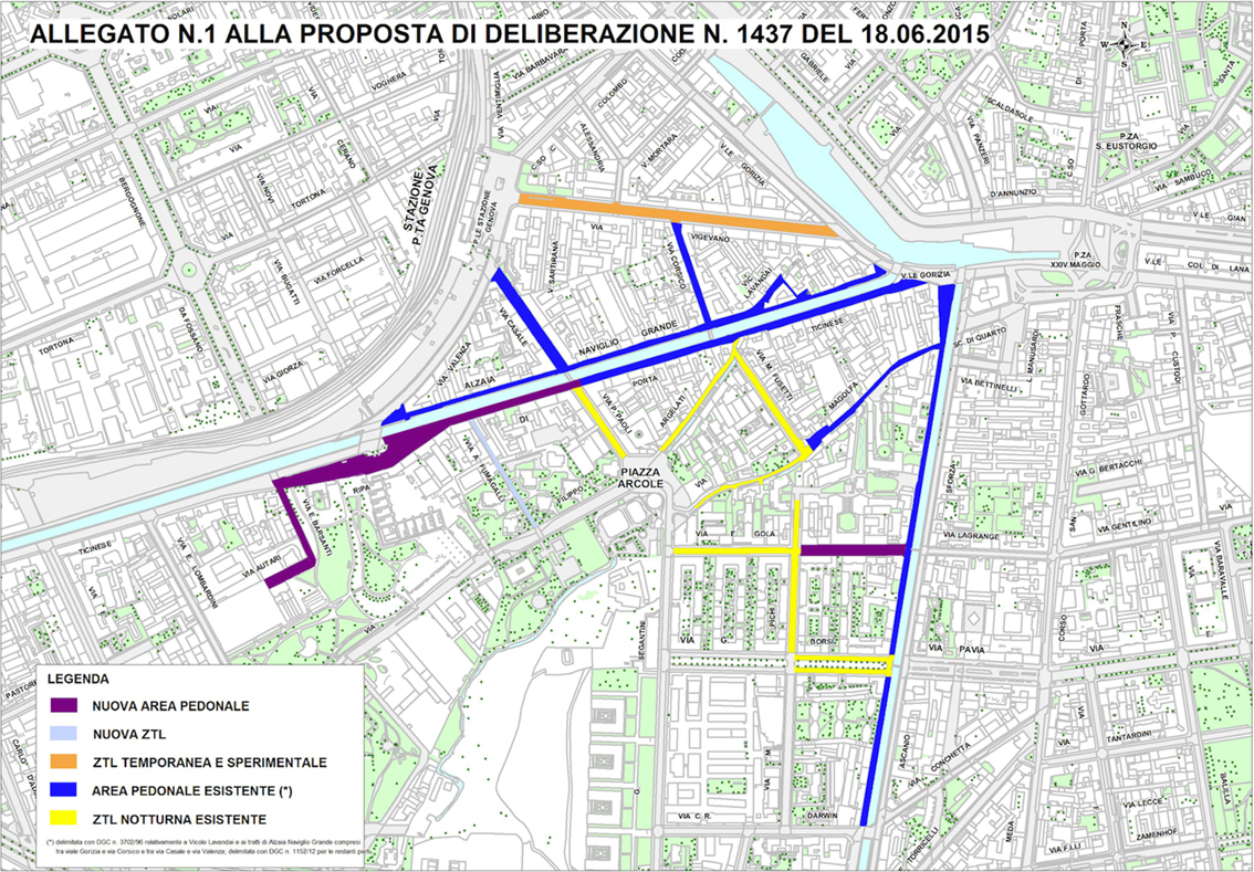 La storia della progressiva trasformazione dei Navigli in zona dedicata prevalentemente alla mobilità dolce è iniziata nel 1996 con la pedonalizzazione dell’Alzaia Naviglio Grande (tra viale Gorizia e via Corsico e tra via Casale e via Valenza) e di vicolo dei Lavandai. Nel 2012 vennero poi create una nuova area pedonale e una Ztl in più vie tra il Naviglio Grande e il Pavese. Nel 2013, infine, la Ztl fu ulteriormente ampliata con due nuove vie.