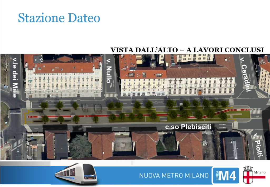 Prende il via la realizzazione della stazione Dateo della nuova linea 4 della metropolitana. Per questo da domenica 23 agosto cambierà la viabilità in corso Plebisciti, che sarà chiuso al traffico in entrambi i sensi di marcia. Durante l’esecuzione dei lavori saranno sempre aperte le intersezioni Plebisciti-Ceradini-Piolti de Bianchi e Compagnoni-Cicognara. Inoltre, i residenti potranno sempre accedere ai propri passi carrai e le linee Atm 54 e 61 saranno per quel tratto deviate nelle vicinanze.In particolare, la linea 54 verrà deviata sul percorso viale dei Mille, via Modena, via Sidoli, via Gozzi, corso Plebisciti. La linea 61 transiterà su viale dei Mille, piazza Ascoli, via Juvara, via Botticelli. La circolazione delle auto private, invece, verrà deviata su questi itinerari: viale dei Mille, via Modena, piazza Novelli, via Sidoli, piazzale Susa; e viale dei Mille, via Gaio, piazza Novelli, via Sidoli, piazzale Susa. Il cantiere Dateo, già esistente, sarà delimitato con la sua configurazione definitiva, necessaria per la costruzione della stazione, e interesserà le carreggiate di corso Plebisciti fino a dicembre 2017. I tratti interessati sono tra piazzale Dateo e via Piolti de Bianchi (sul lato dei civici pari) e da via Gozzi a via Cicognara e da via Ceradini a piazzale Dateo (sul lato dei civici dispari).
