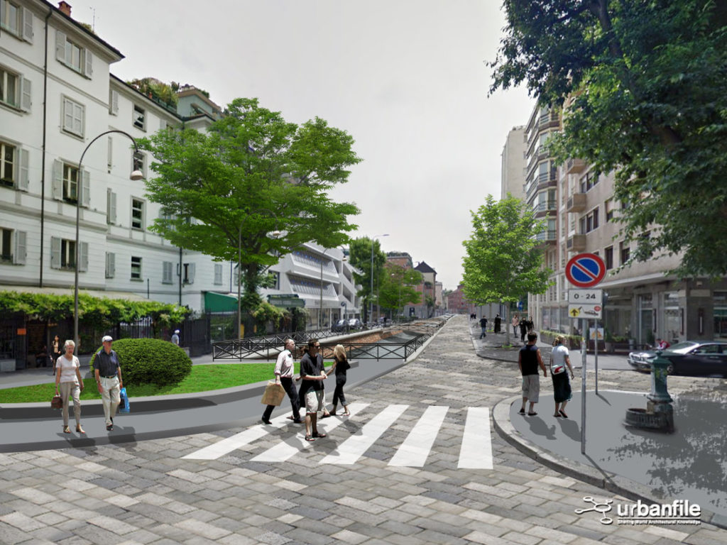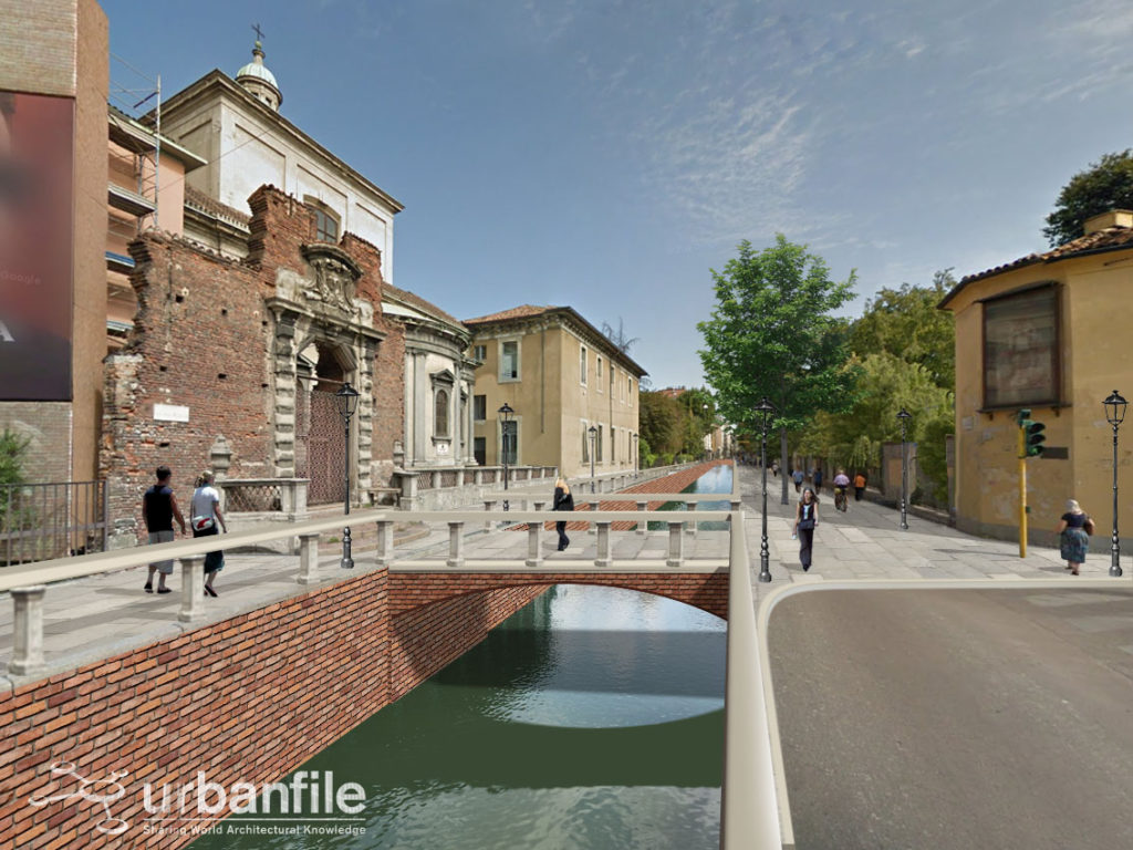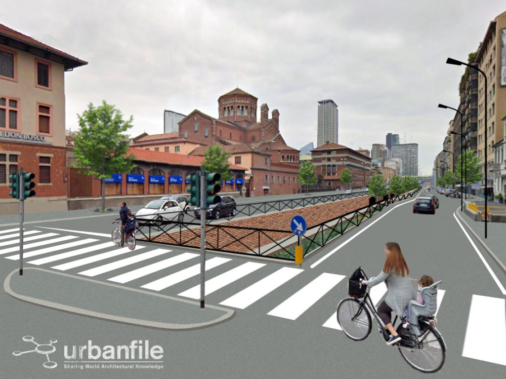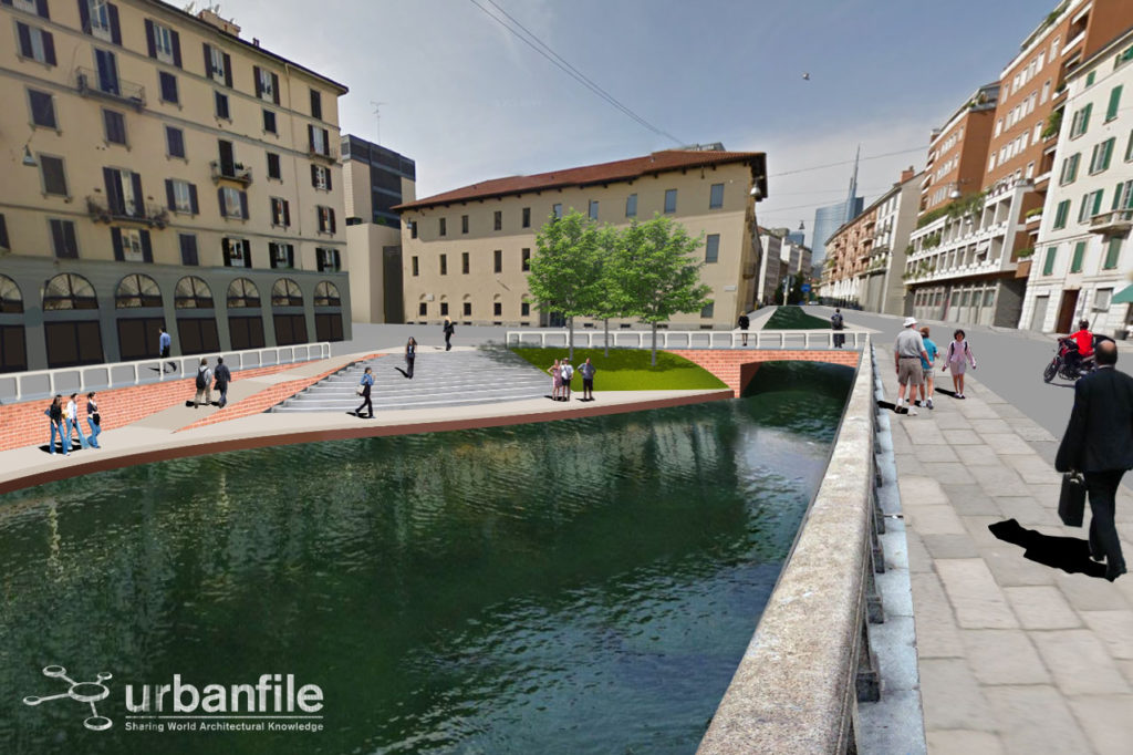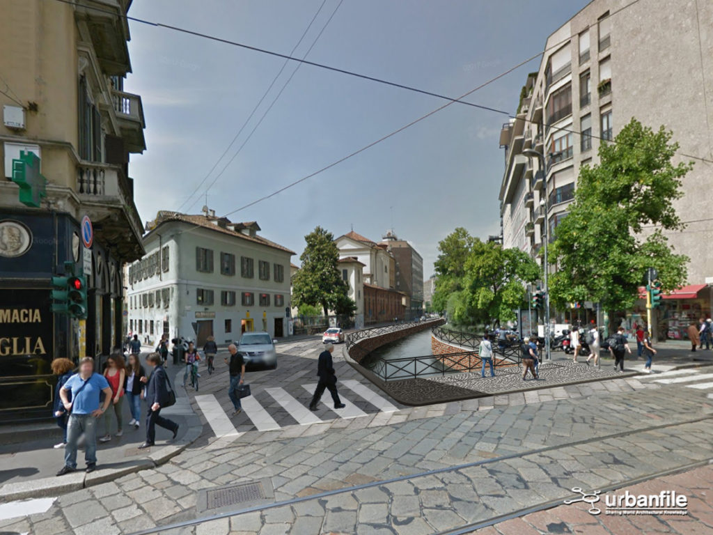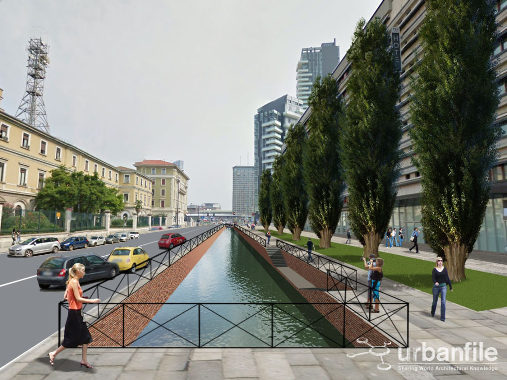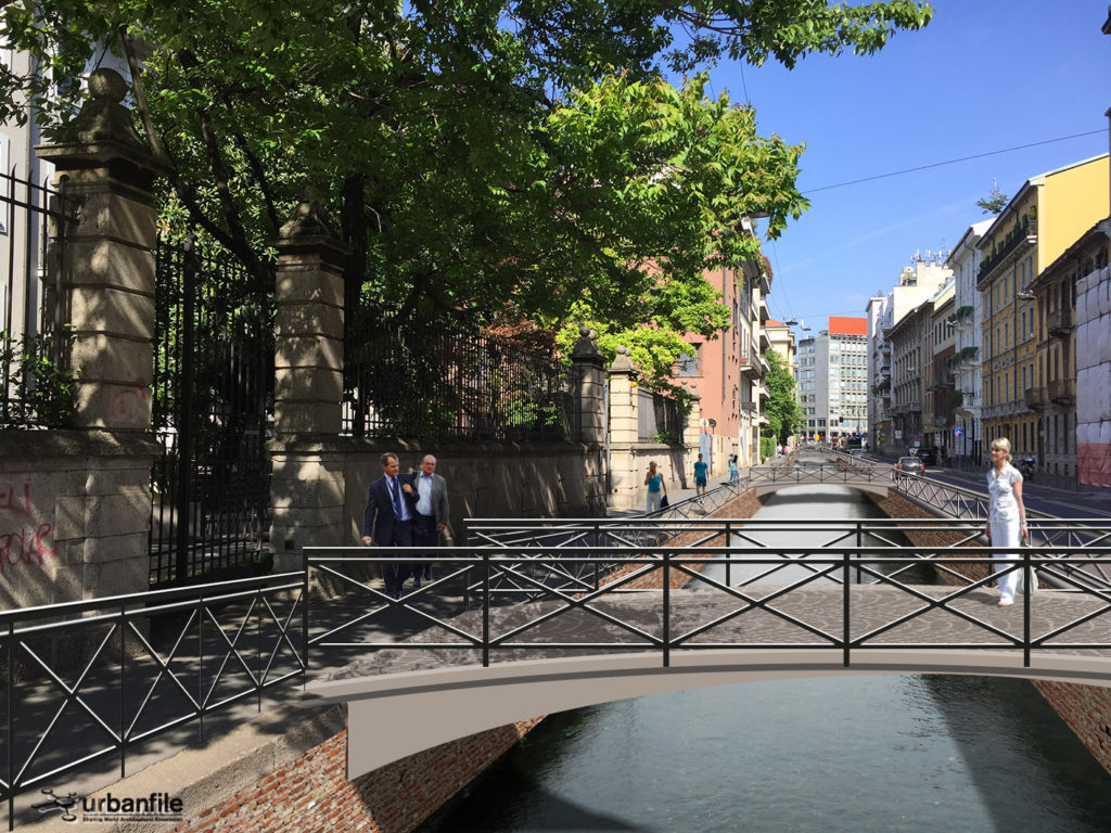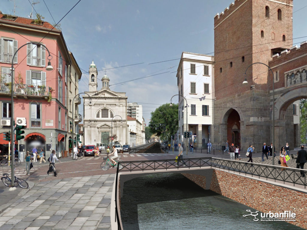 Noi abbiamo cercato di verificare visivamente, con una serie di fotomontaggi, quale impatto avrebbe la riapertura della Cerchia dei Navigli nella città attuale. Naturalmente il progetto non sarà più una ricostruzione com’era e dov’era (anche per impedimenti di carattere tecnico) ma sarà un adattamento moderno del canale con le attuali necessità.