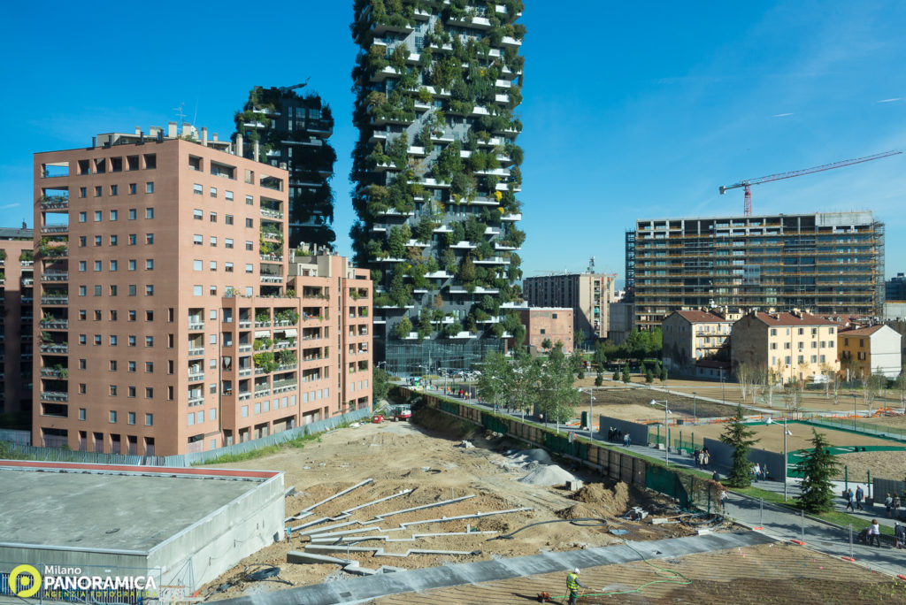 Ecco una serie di foto scattate da Francesco Langiulli per Milano Panoramica, con vista dal 25° piano e dal 2°, dove è possibile vedere i lavori alla Biblioteca degli Alberi nel parco di Porta Nuova, per l’occasione abbiamo fotografato anche i cantieri del restauro della Torre di Via Bonnet e della Torre Galfa.