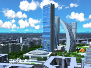Di seguito alcuni rendering realizzati da me tra il 2007 e il 2011. Naturalmente nel corso del tempo le torri hanno avuto dei cambiamenti strutturali e d’aspetto, così come alcune torri o palazzi sono stati cancellati definitivamente o hanno lasciato il posto ad altre strutture.