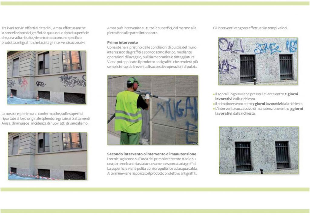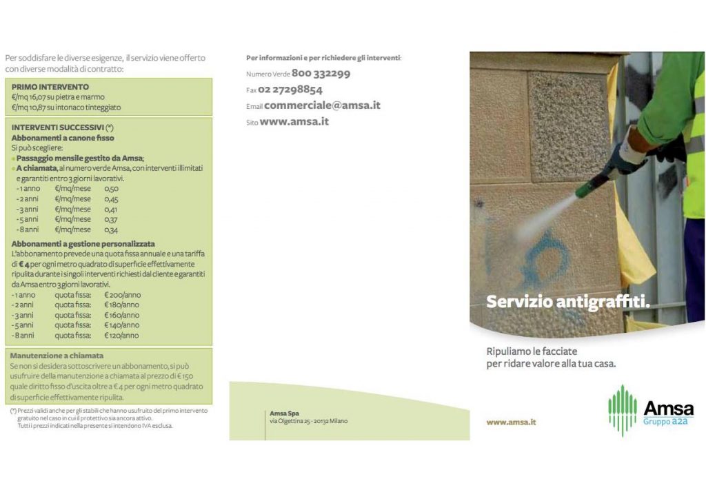 Il Comune di Milano ha istituito da diverso tempo un servizio antigraffiti di Amsa. Servizio che andrebbe un po’ pubblicizzato e applicato, vista anche l’economicità dello stesso nei casi in cui si tratti di condomini.