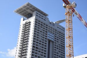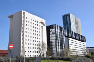 Le prime strutture a insediarsi nell’area furono gli uffici distaccati del Ministero della Salute, ad oggi una della parti più riuscite dell’intero masterplan, e il centro commerciale, oggettivamente mediocre e abbastanza kitsch, con cupole e capitelli che dovrebbero scimmiottare qualche stile architettonico dei tempi andati.