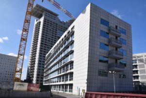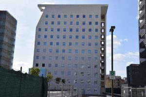 Accanto alla torre Purini è stato costruito un altro edificio più basso, le forme sono sempre squadrate ma riesce ad avere un suo perché grazie ad un gioco di geometrie e a una facciata più lineare.