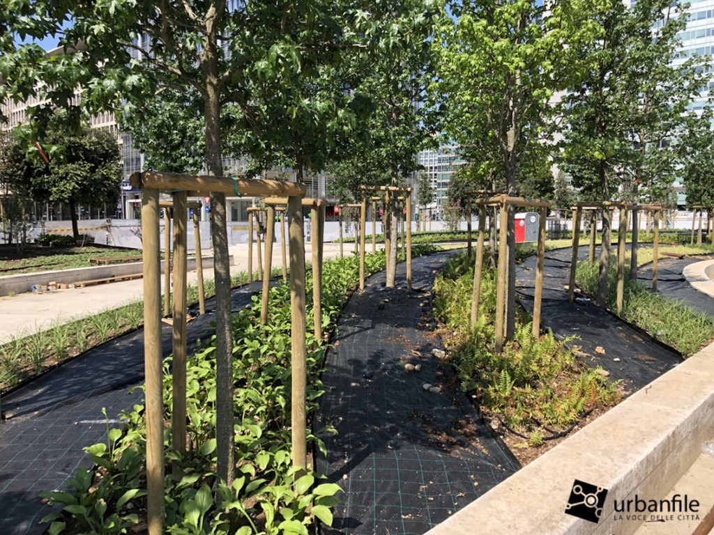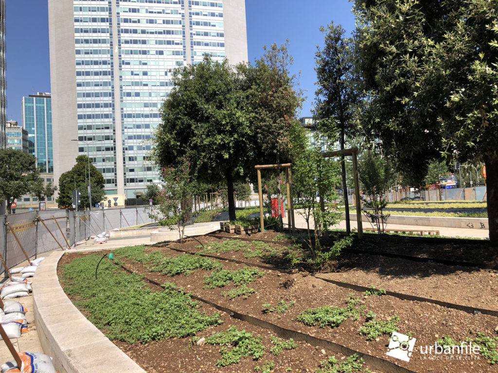 Probabilmente l’intento è quello di impedire il bivacco sotto le piante come avveniva da lungo tempo, ma sarà difficile giudicare finché l’area non sarà aperta al pubblico. Certo l’inserimento di “dighe” in metallo per separare le specie di piante renderà difficoltoso stendersi sotto le fresche frasche; però chi occupava l’aiuola prima dell’intervento si è trasferito sotto i portici, di fatto spostando il problema altrove, senza una definitiva soluzione.