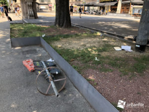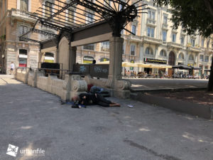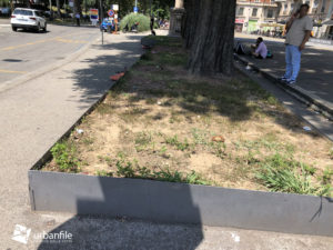 Le aiuole sono spesso, tanto per cambiare, ricche di immondizia, gettata o arrivata e rimasta incastrata per strani motivi tra i cespugli. Verso via Tadino poi, c’è sempre il crogiolo di perditempo che bivaccano, dormono e soprattutto bevono ai piedi dell’ingresso al Diurno in stile liberty. Di seguito un po’ di immagini di questa parte di piazza Oberdan.