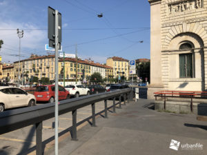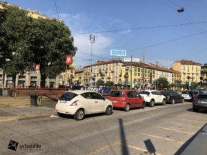 Ma il meglio la piazza lo da sul versante “Centro Città”, dove si trovano i due caselli neoclassici. Un edicola abbandonata e in forte degrado ci delizia a lato del casello storico, un totem oramai inutile funge da arredo urbano assieme a due panchine. La vecchia fermata dei tram abbandonata, ci ricorda come quest’angolo sia poco curato dal Comune. Cartelli stradali piazzati ovunque e apparentemente a caso. Sporcizia, pavimentazione rovinata, auto parcheggiate dove è possibile, binari rimasti, che non serviranno mai più e che affogano nei marciapiedi, insomma, un senso di abbandono percepibile da anni.
