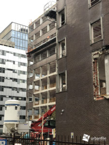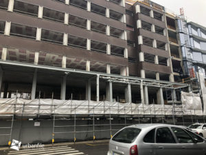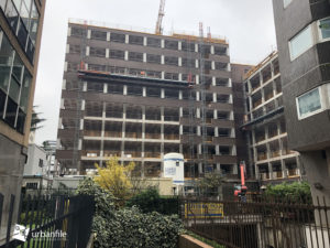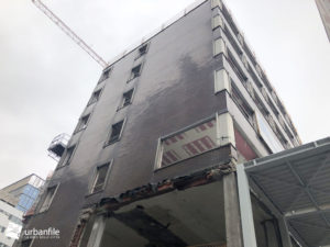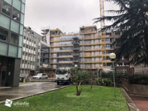 Prosegue la riqualificazione del palazzo di via Pola 9/11 all’Iola. La parte verso via Ippolito Rosellini è molto più avanzata, mentre la parte verso via Restelli è ancora in fase di spoglio (stri-pout).