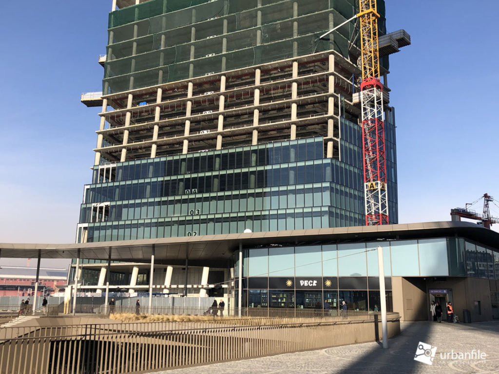 Recentemente abbiamo visto alcune foto dal cantiere della torre del Curvo, ormai giunta al 25esimo piano, e come abbiamo ricordato, entro il mese di marzo le strutture in cemento armato saranno terminate. Successivamente ci sarà l’avvio della fase per la realizzazione della corona in acciaio che porterà l’altezza complessiva della torre a 175 metri.