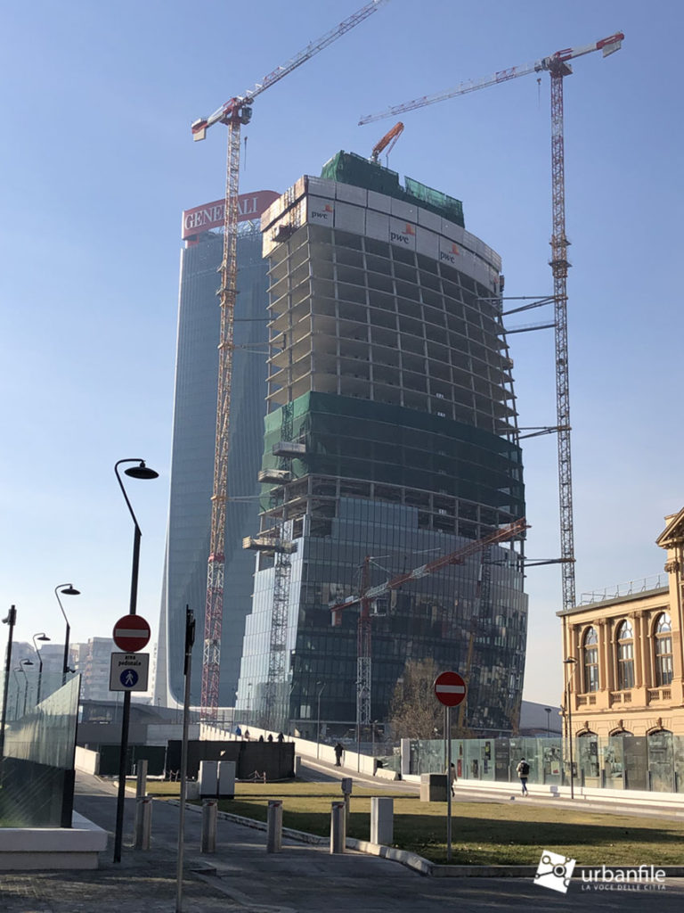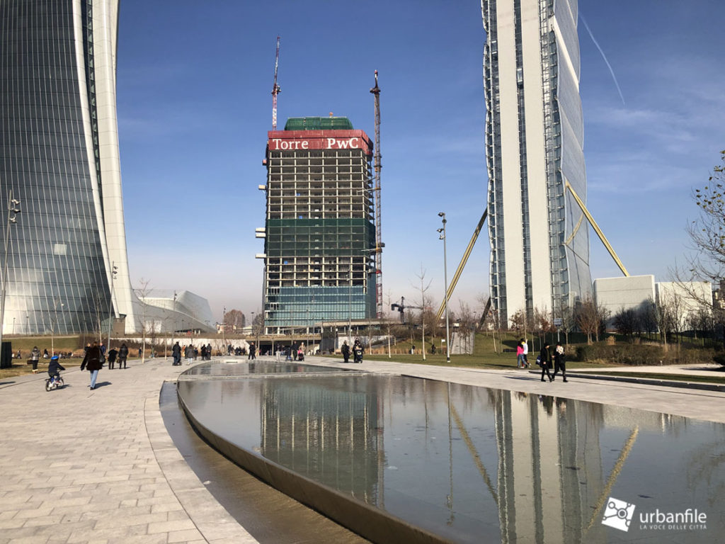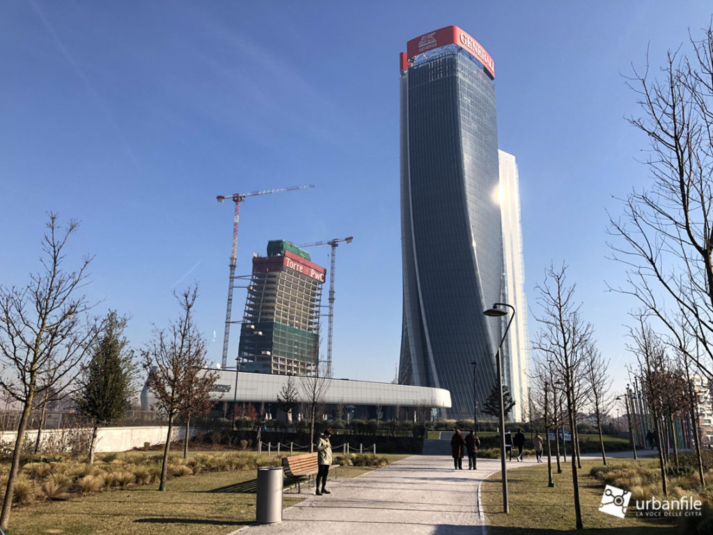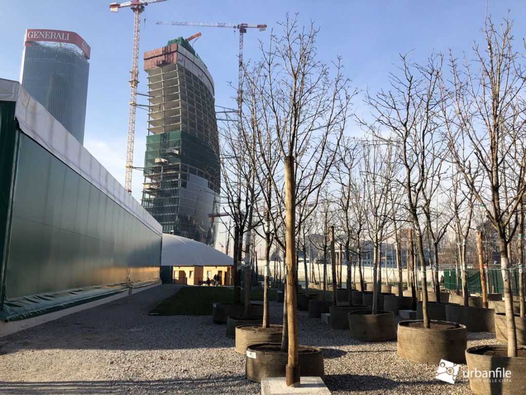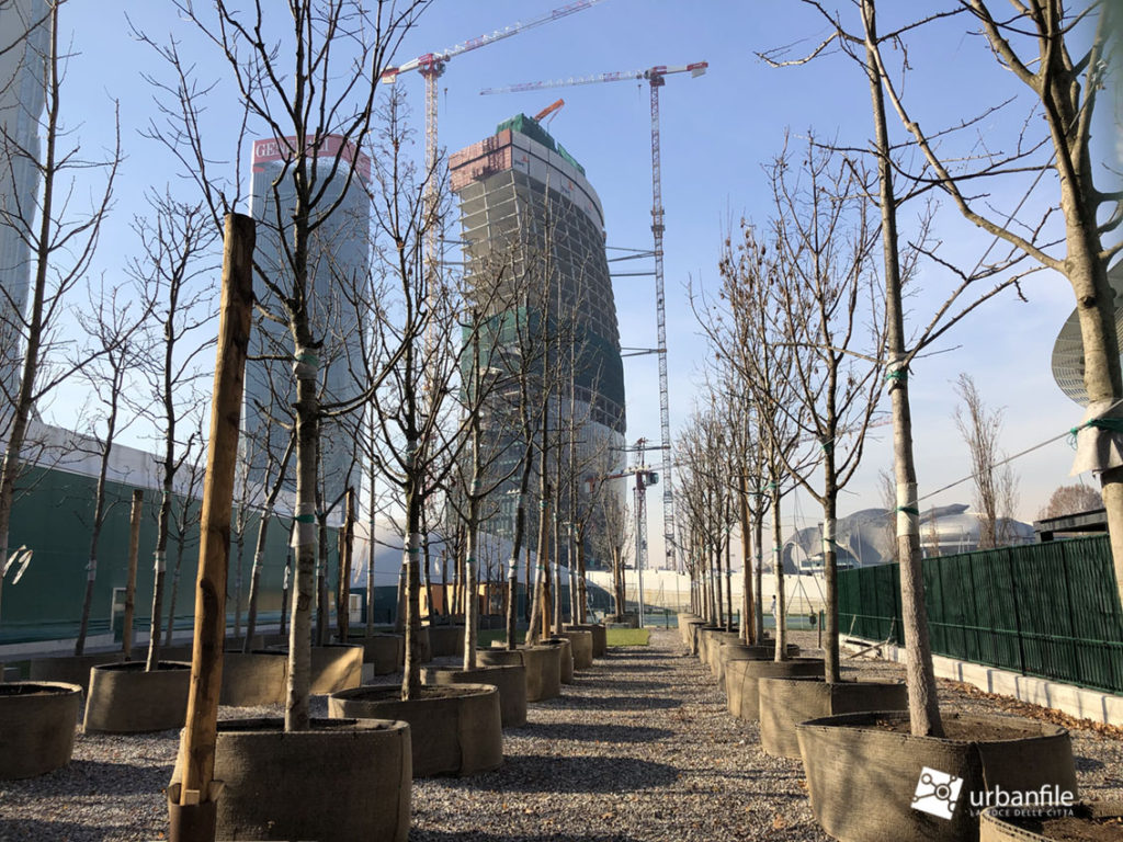 Questa è la torre Allianz, il Dritto Questi alberi verranno piantati nel parco in fase di realizzazione tra piazza Tre Torri e viale Duilio