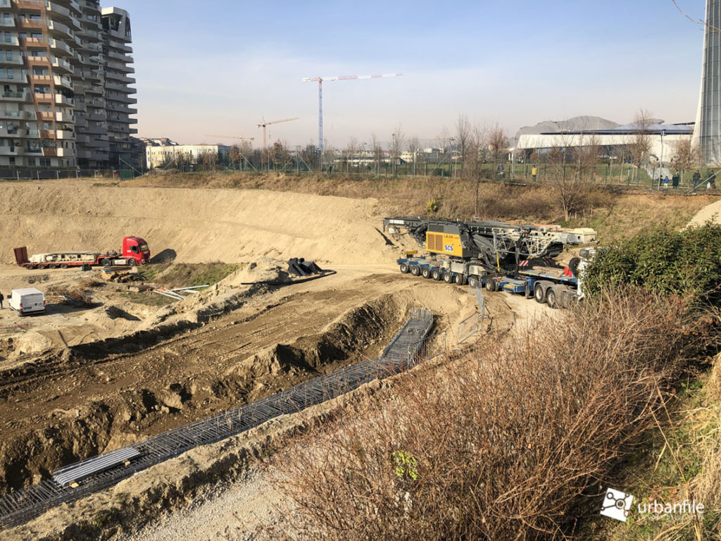 Nel cantiere di CityLife, a Tre Torri, come ben sappiamo, attualmente sono in corso tre cantieri, quello della torre Libeskind-Curvo, il parco (questa volta non vi mostriamo foto però), le residenze Libeskind e la sistemazione di Largo Domodossola.