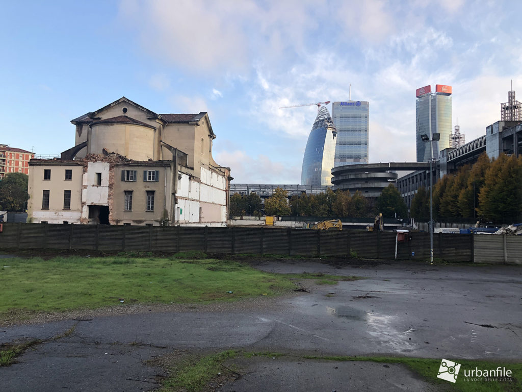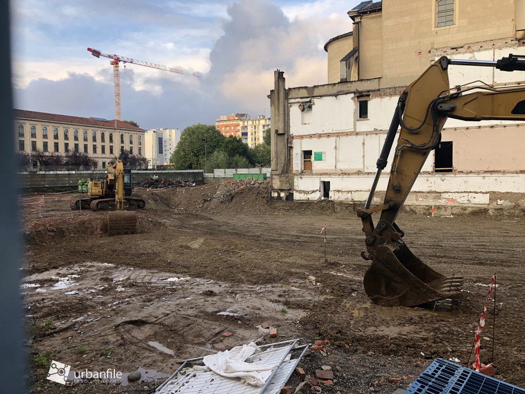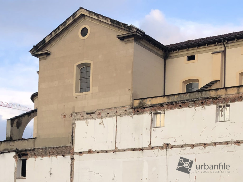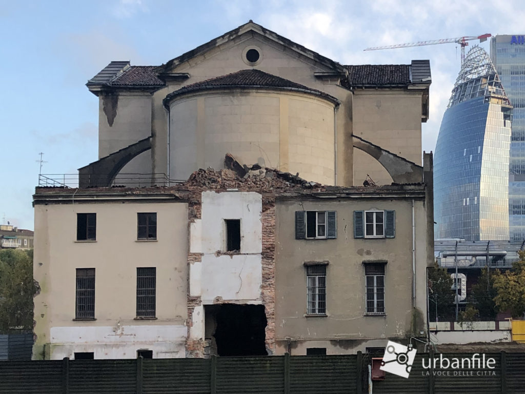 Un aggiornamento dal complesso in demolizioni dell’ex chiesa del Cristo Re in via Bartolomeo Colleoni 14 al Portello. Per ora è rimasta in piedi solo la chiesa, costruita nel 1926-27. Buona parte verrà salvata e trasformata in un mega Hotel.