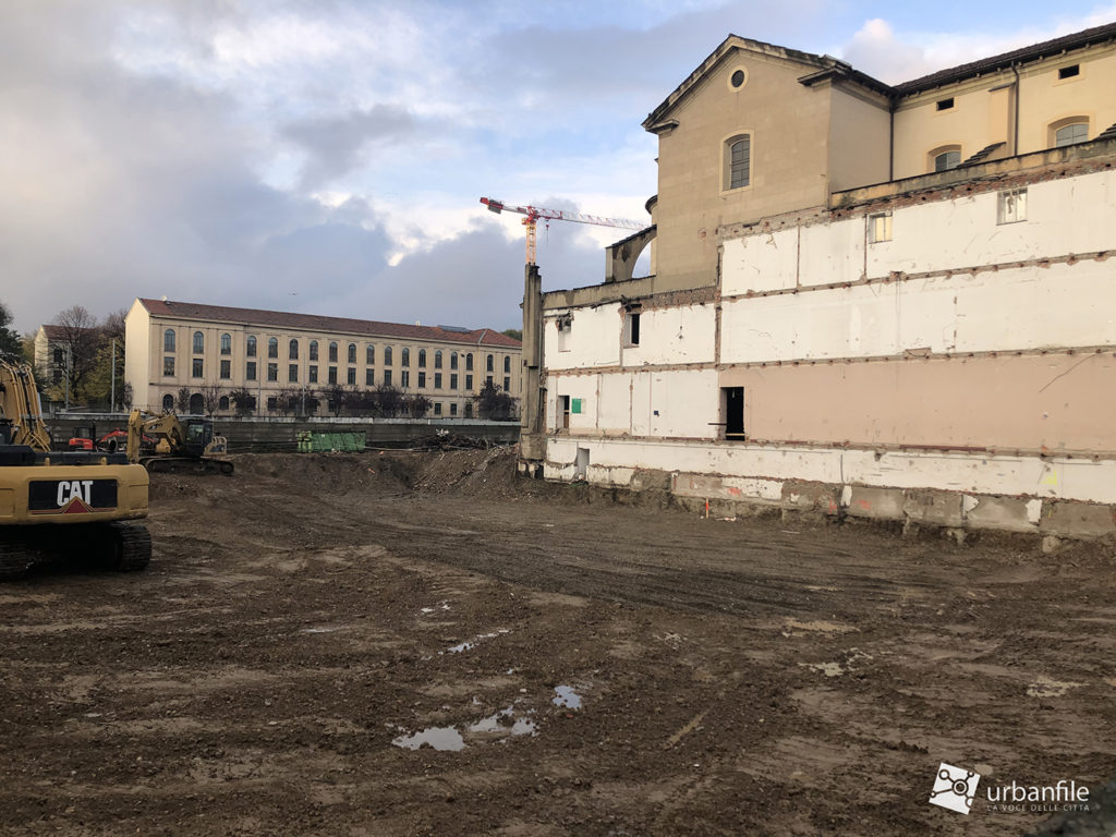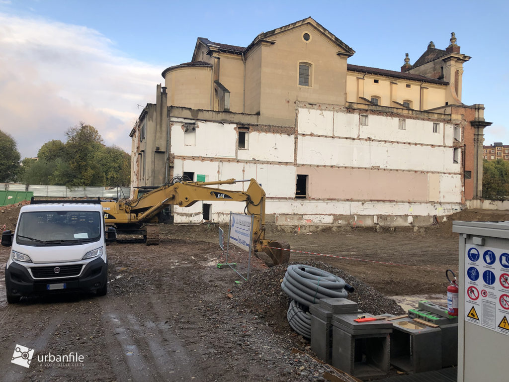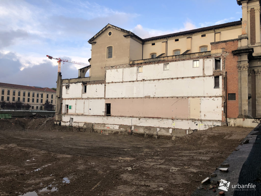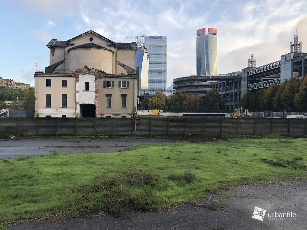 Un aggiornamento dal complesso in demolizioni dell’ex chiesa del Cristo Re in via Bartolomeo Colleoni 14 al Portello. Per ora è rimasta in piedi solo la chiesa, costruita nel 1926-27. Buona parte verrà salvata e trasformata in un mega Hotel.