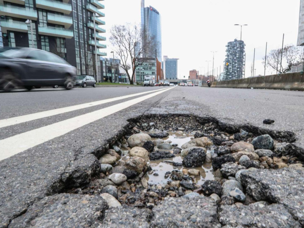 Quella meno buona è la qualità dei lavori pubblici, via Lodovico il Moro e Coni Zugna appena rifatte son piene di buchi peggio di prima (e la pioggia non c’entra).