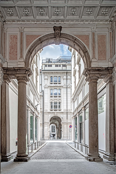 Il complesso di edifici di via Cantù – via Orefici è un tassello del grande disegno ottocentesco di piazza Cordusio, luogo intermedio tra il Duomo e il castello Sforzesco, destinato alle funzioni della City milanese (la Borsa, le principali sedi bancarie, la posta centrale).