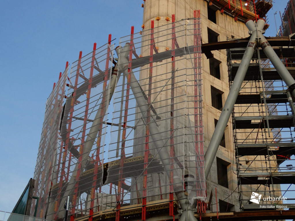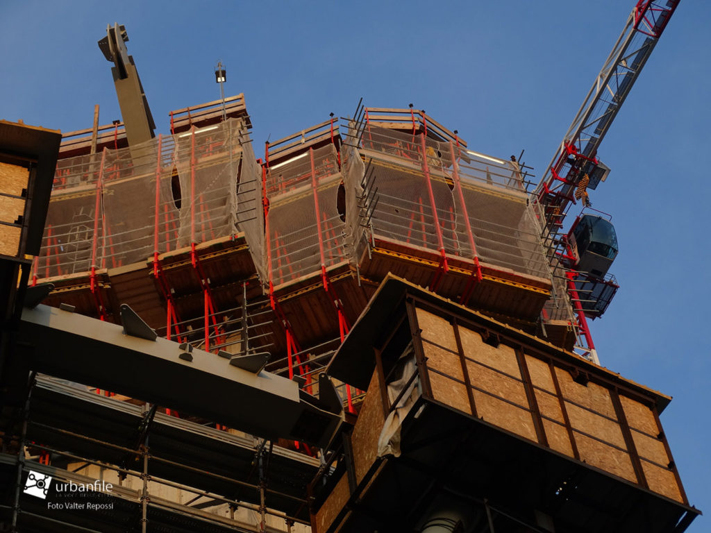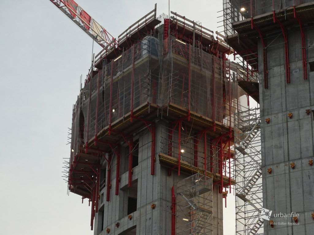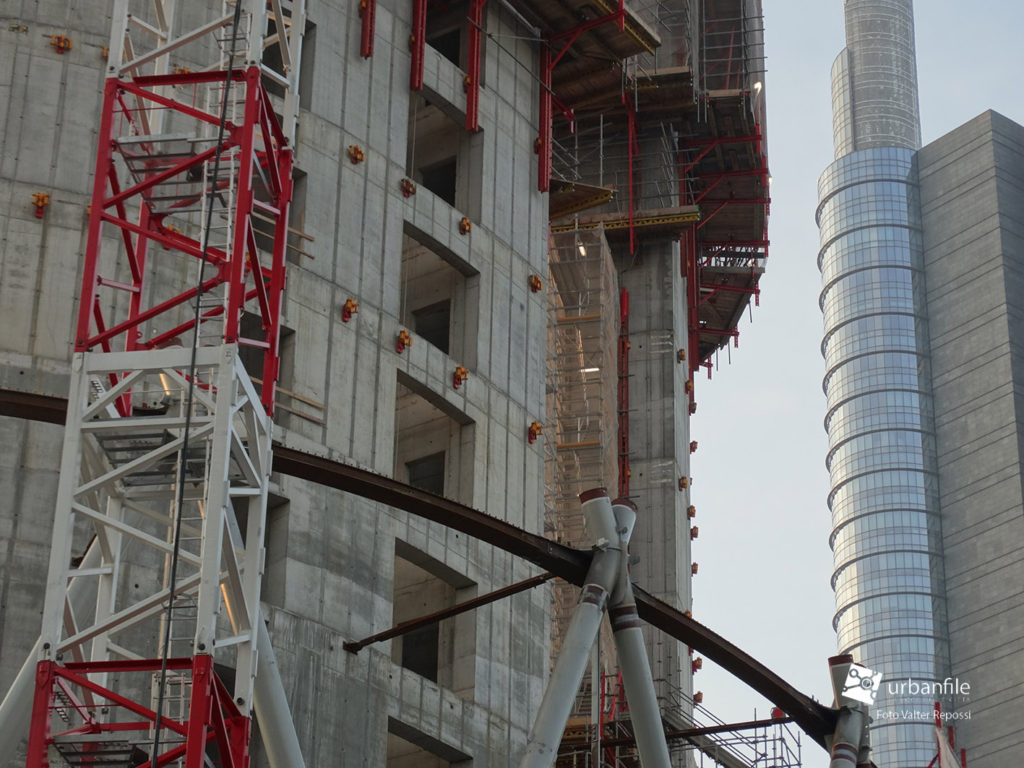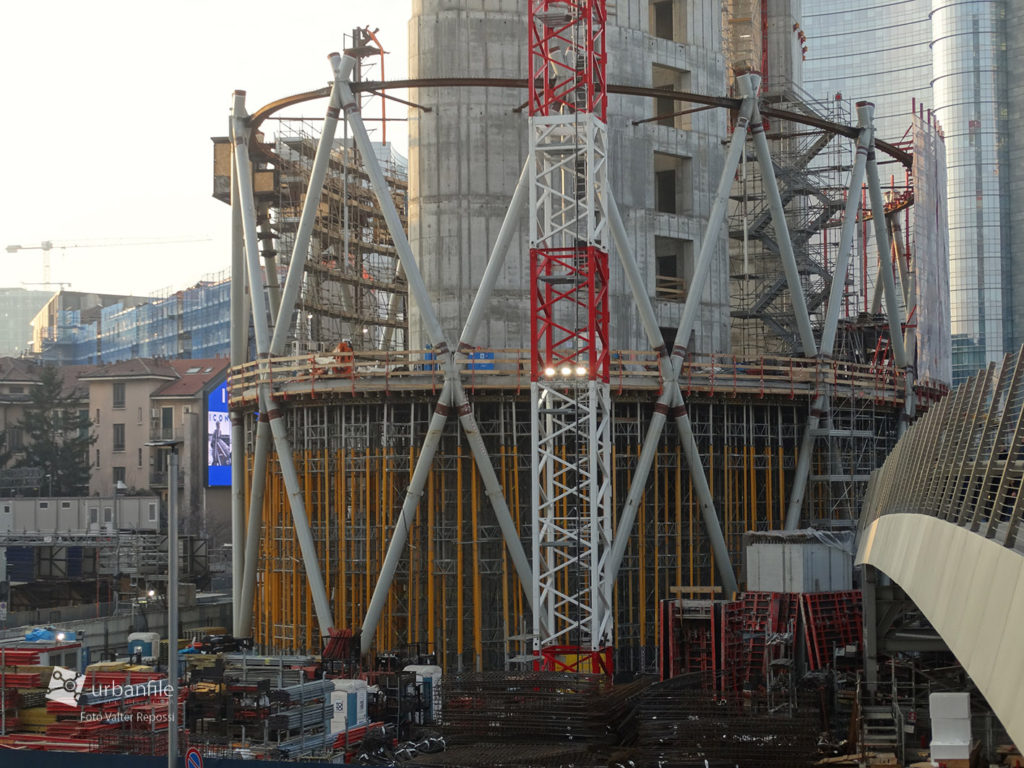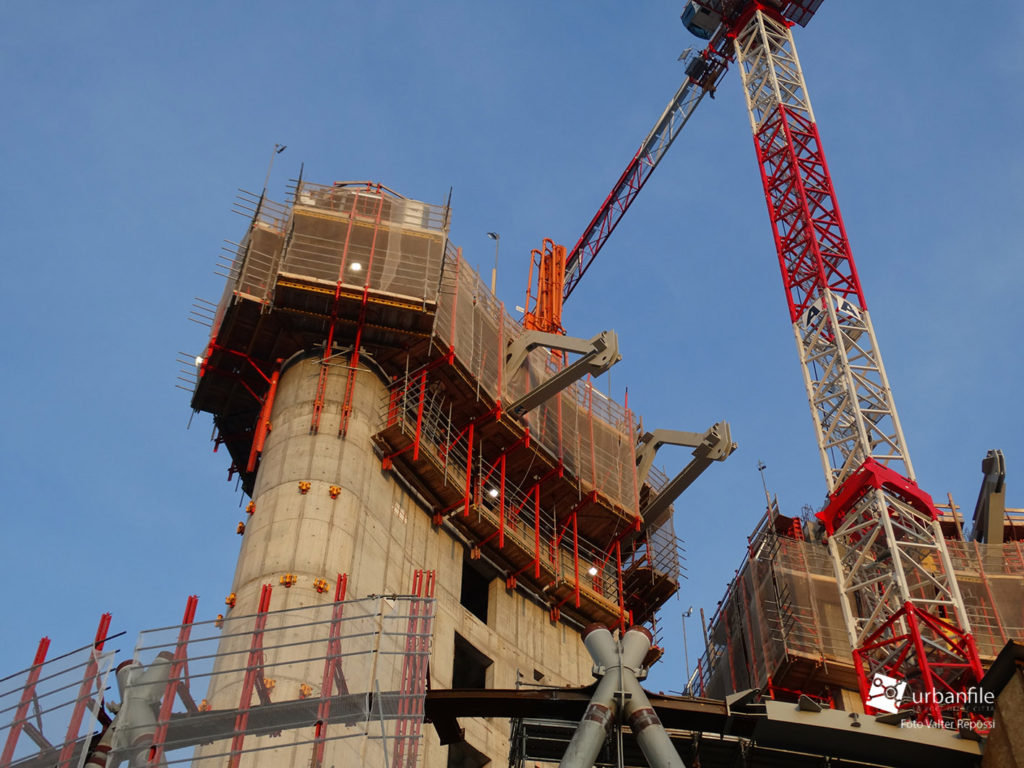 Aggiornamento di fine gennaio 2020 dal cantiere della Torre Unipol, di circa 120 metri, progettata dallo studio di Mario Cucinella Architects in costruzione a Porta Nuova in via Melchiorre Gioia.