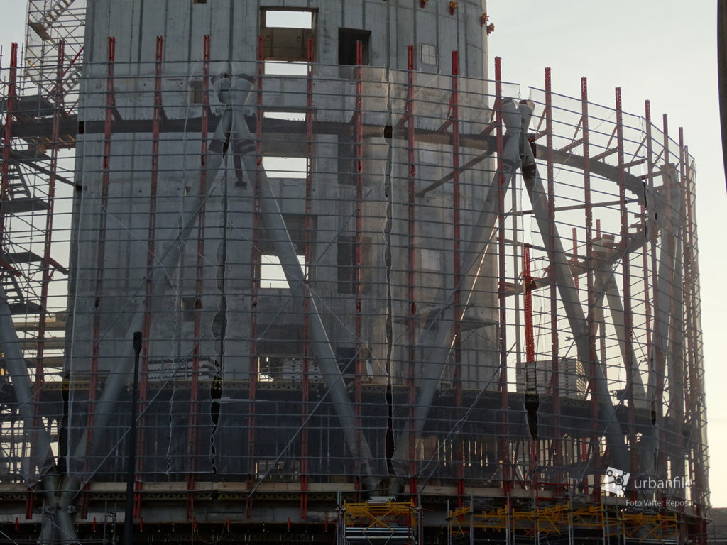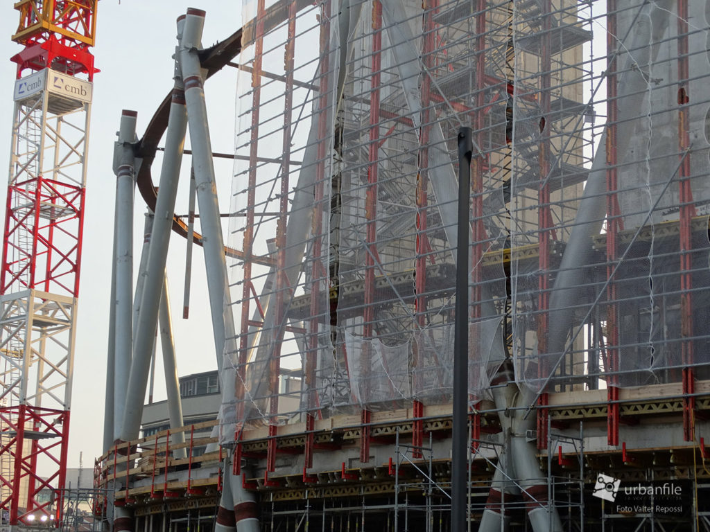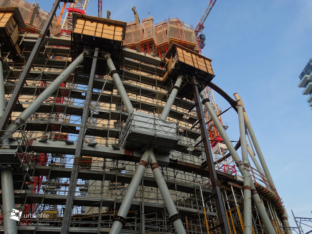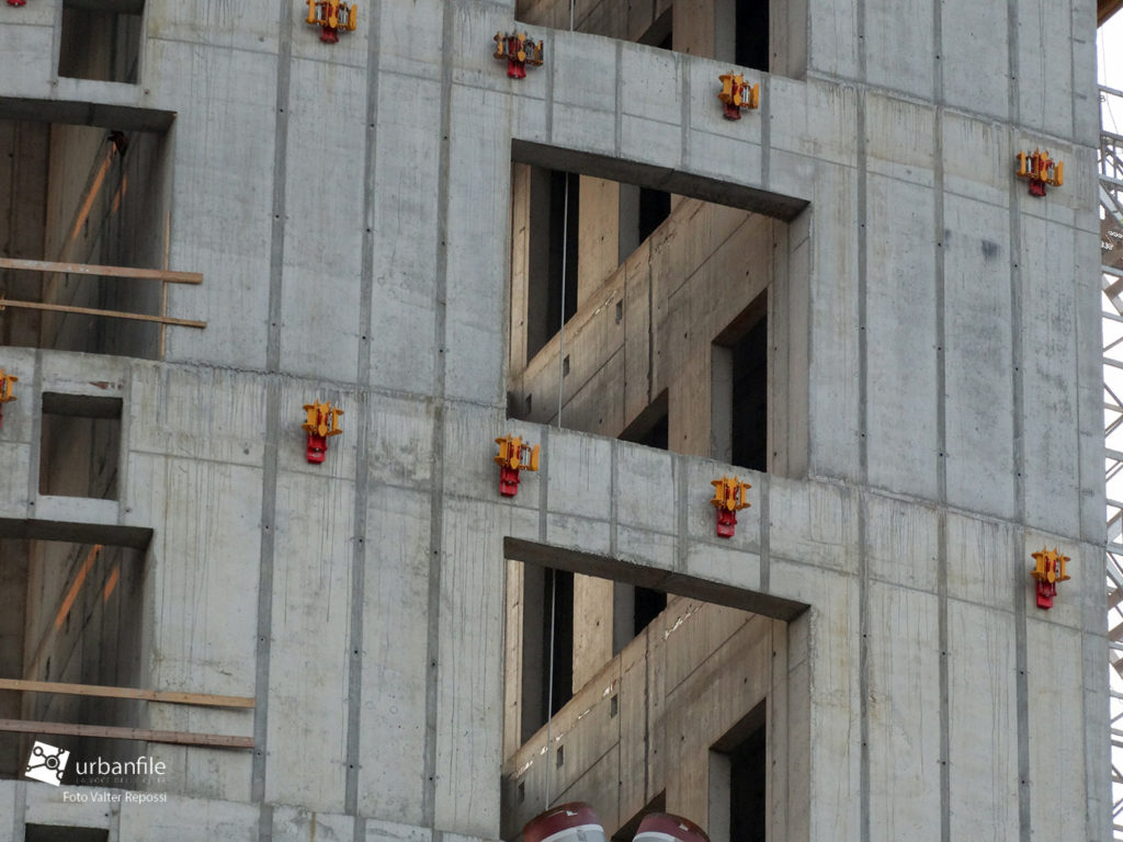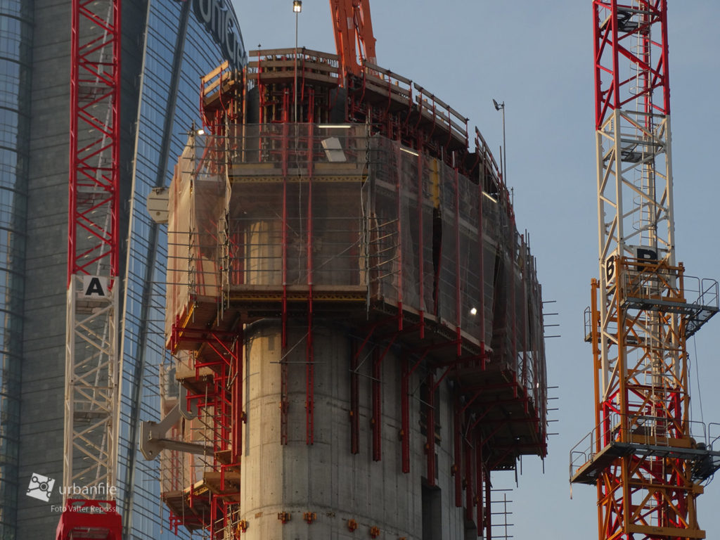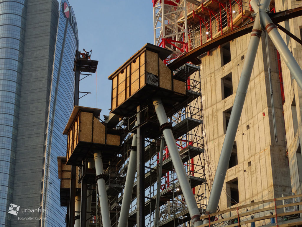 Aggiornamento di fine gennaio 2020 dal cantiere della Torre Unipol, di circa 120 metri, progettata dallo studio di Mario Cucinella Architects in costruzione a Porta Nuova in via Melchiorre Gioia.